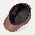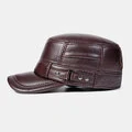 Mænds Flat Top Cap Cowhide Indbyggede Earmuffs Windproof Warm Militær kasket Earflap Hat