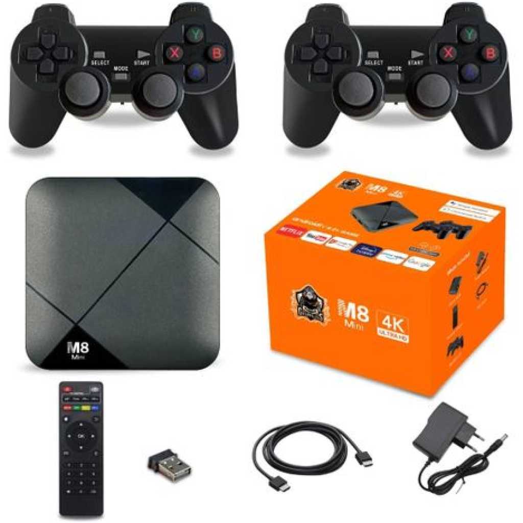 Product description About M8 Mini Video Game Console: ( Android TV & 1 Games Console ) Built-in pre-installed video game console 10000 TV games, which can be played as downloaded and installed. In addition, this super box can also be switched to Android TV 9.0 system, you can download the APP in this mode, you can also watch news and watch videos on TV.