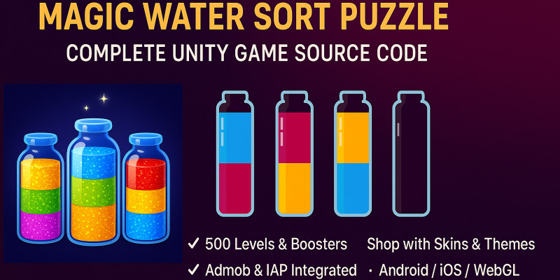Magic Water Sort Puzzle – Unity Game Source Code. Launch a full-featured Unity water sort puzzle with ads, IAP, shop & 500 levels.