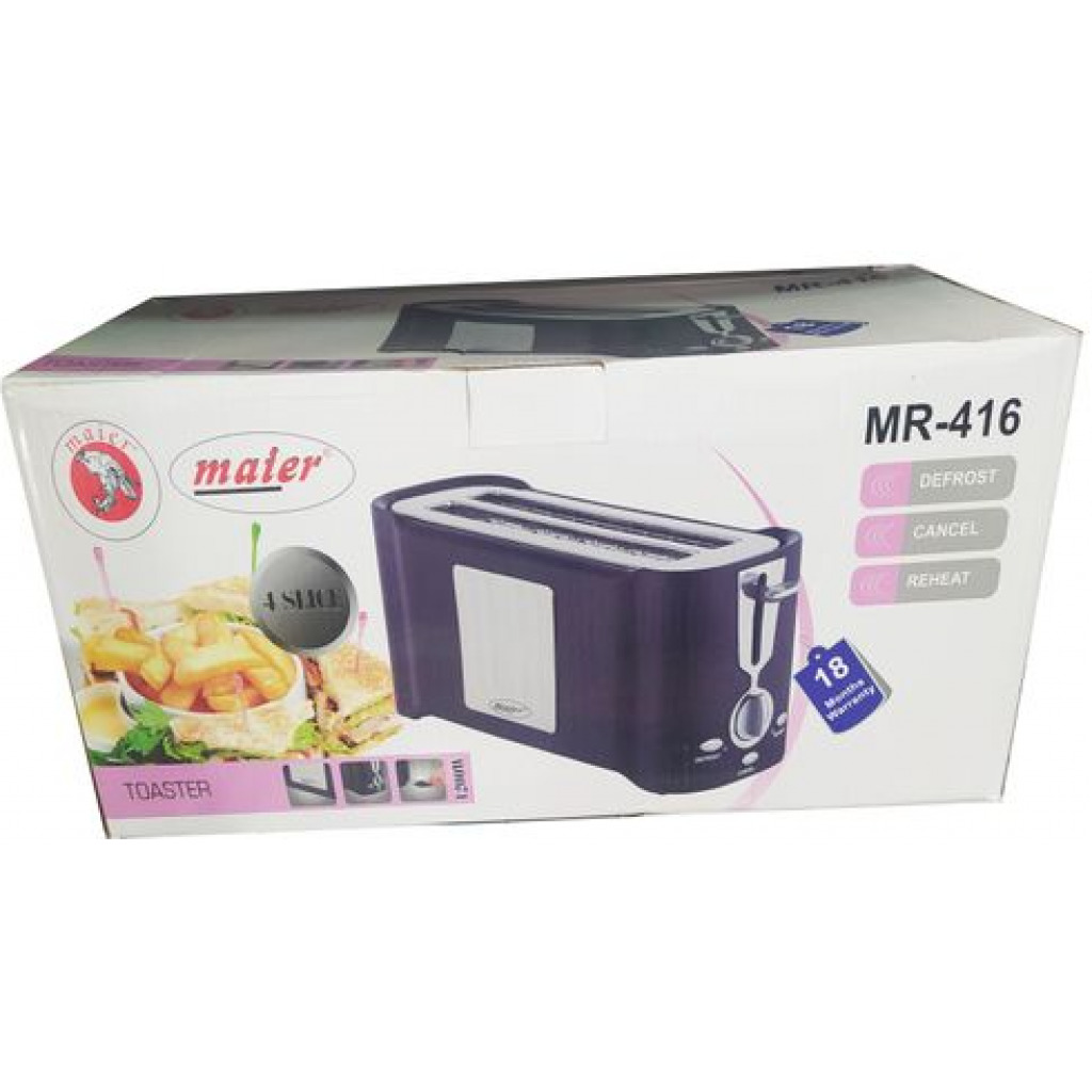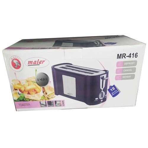 NL-I K-2420 NL-WB-7310 The Maier toaster is an efficient and compact appliance that can toast up to 4 slices simultaneously. It comes with 7 heat settings that gives you greater control over the speed and intensity of the toasting. The slide-out crumb tray allows for easy cleaning as it collects all the bread crumbs in a tray to be disposed of easily.