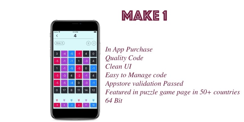 Make 1 Number Puzzle Game iOS. Number puzzle game , just swipe the numbers and have fun