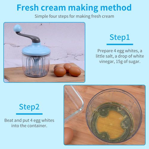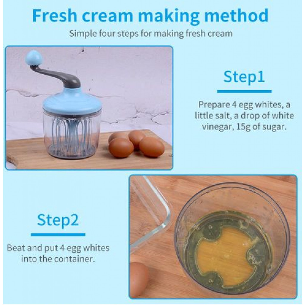 Egg Beater baking tool Rotary Hand Whisk Whisk Egg Beater Mixer Hand Mixer Hand Mixer Kitchen Mixer Cooking Tool. From beating a single egg to mixing a cake batter, the sturdy and efficient classic whisk has multiple wires to create volume and quickly smooth out clumps of mixes. Strong, sharp stainless steel blades make it easy to cut vegetables and fruits and will last for years. Designed for mixing sauces, marinades, eggs, cake batter, pancake mix and more. The whisk can whip eggs, stir dough, whip cream and stir sauces, an ergonomic design that makes it convenient and easy to use. Features: Fast, environmentally friendly, safe no noise. Use: cream, frozen cream, biscuits, milk foam, soluble beans, milkshakes. Product weight: 501g Capacity : 1100ml Material: ABS + PET Quantity: 1 piece Package included Key Features: Made of quality ABS material, eco-friendly, good toughness and durable Hand type design, more fast and effective to beat eggs and whip cream The long crank is labor-saving and comfortable to grip Detachable and easy to clean Includes bottom anti-skid pads, stable and not easy to slip