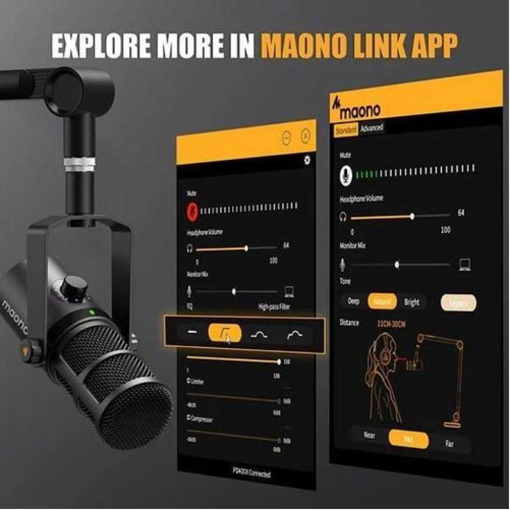 Key Features: Upgraded Podcast Equipment Bundle: Elevate your podcasting, streaming, and studio recording with the E2 Gen2 podcast equipment bundle. This all-in-one solution offers an intuitive design that allows you to start your podcasting journey right away. With two XLR combo inputs and a high-quality preamp offering 60dB gain, E2 GEN2 is perfect for co-hosts. Plus, the USB-C and 3.5mm ports make it easy to connect to phones and computers, ensuring smooth and clear audio every time GET An IMPRESSIVE BROADCAST-SOUND QUALITY: The PD100 dynamic XLR microphone focuses on podcasting, vocal recording, streaming, and content creation. Built-in dynamic core and inner double layer pop filter, thanks to the noise isolation technology, better attenuation of plosive. Well-balanced reproduction across a wide frequency response range 60-14kHz, delivering clean and mellow audio. works great for podcasters, streamers, and Content creators HI-FI SOUND: UPGRADED DJ studio headphones MAONO MH601 is built-in 50 mm large aperture driver, for immersive sound, which can bring you better listening enjoyment. Exceptional clarity throughout an extended frequency range, with deeper, accurater bass response. Soft and comfortable closeback ear pad reduce background noise to a certain extent, makes you focus on what you want to hear Crystal-Clear Audio with XLR Interface: The E2 Gen2 podcast interface has two premium and low-noise preamps, delivering up to 60dB of gain. This ensures you get rich, clean sound even when using dynamic microphones. Whether you’re a beginner or a pro, the E2 gen2 eliminates needing an external preamp. Noise reduction technology keeps unwanted sounds like fan noise away, so your podcast recordings stay pristine Add Personality with 8 Custom Sound Effects: Bring your content to life with the E2 gen2’s 8 customizable sound effect buttons. Perfect for podcasters and streamers, you can upload your favorite intro music, quirky sound bites, or custom effects to engage your audience. Each button supports up to 20 seconds of recording with adjustable volume, making it the ultimate podcast mixer to add personality to your shows