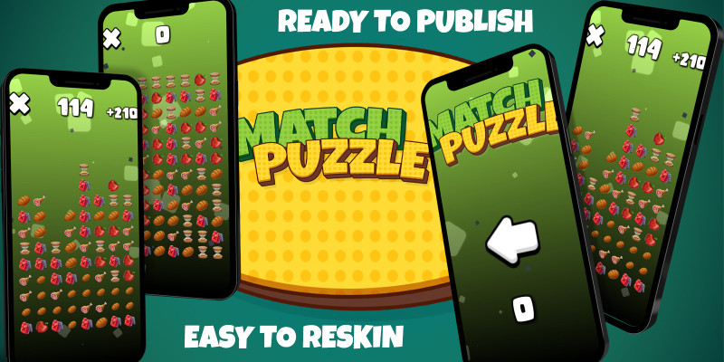 Match Puzzle - Unity Source Code. addictive tile-matching puzzle! Featuring smooth swipe mechanics, brain-teasing levels, and a sleek UI, this game is optimized