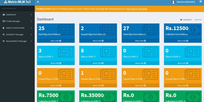 Matrix MLM 3x3 - Autofill User2User Donation Plan. A Powerful CMS Which Provides A Platform to Manage Your Matrix MLM Network