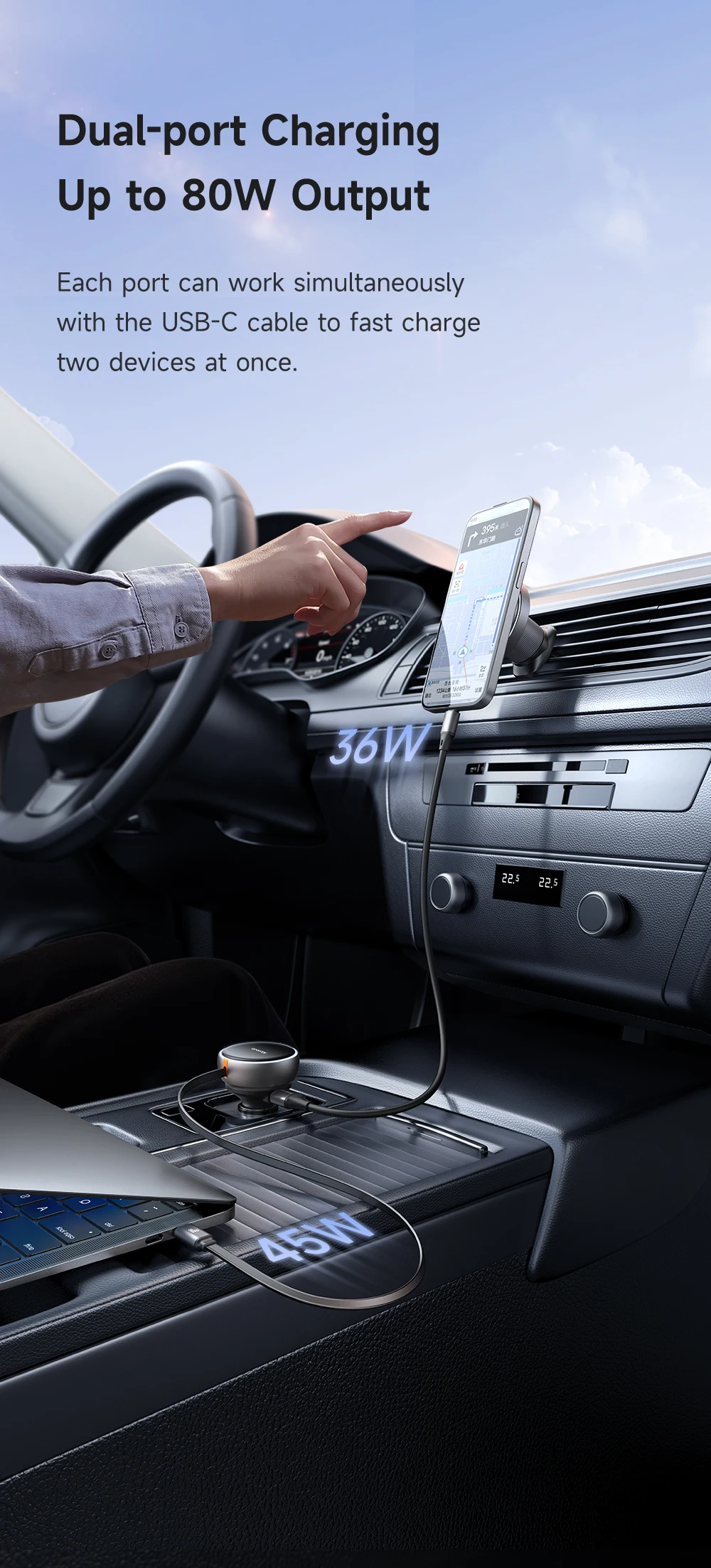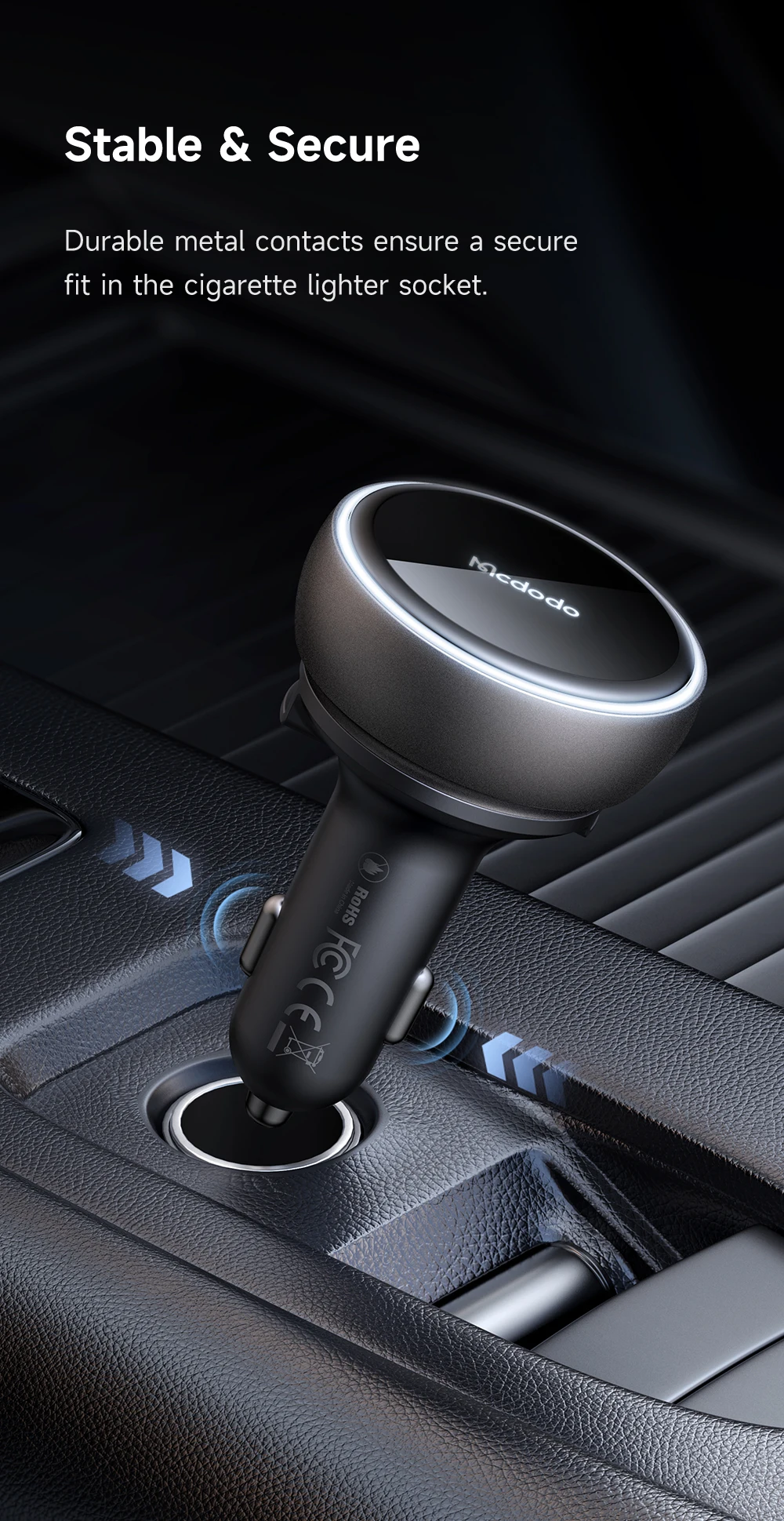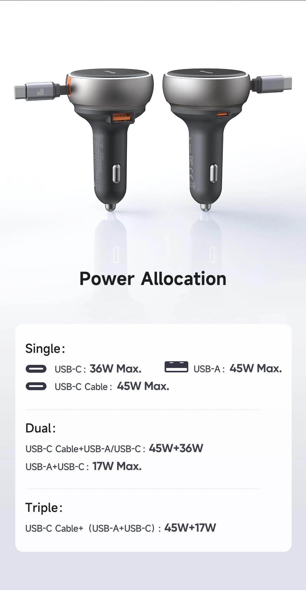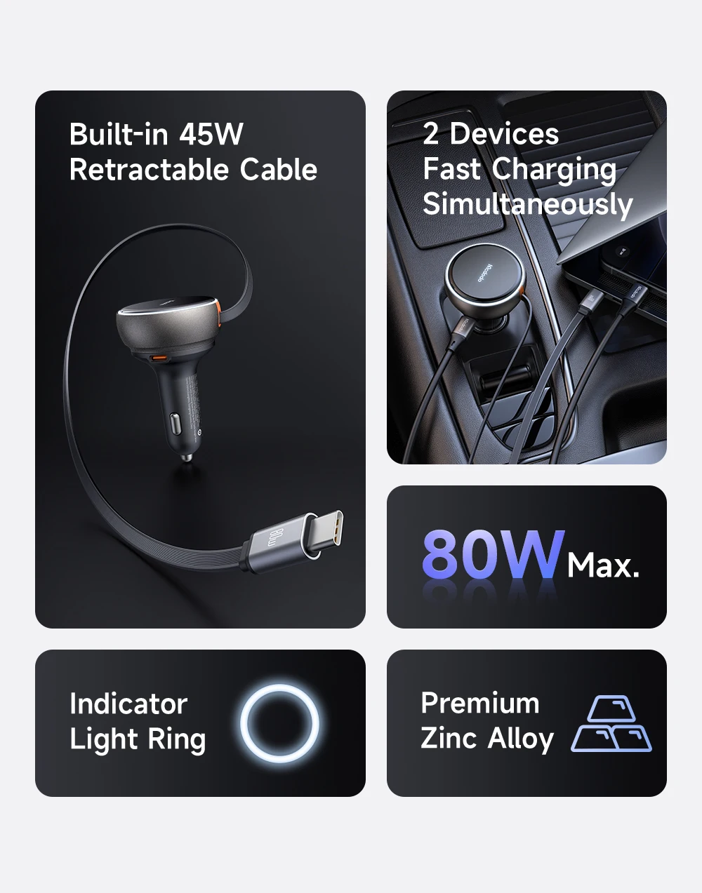 Product Key Features: Mcdodo 485 FreeGo 80W PD Car Charger Retractable Cable 80cm 80W PD3.0 PPS QC4+ AFC SCP Fast Charger in Car with USB-C Cable