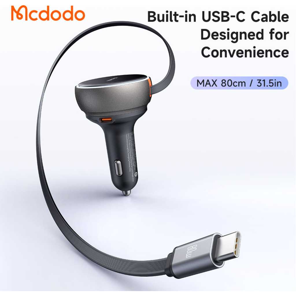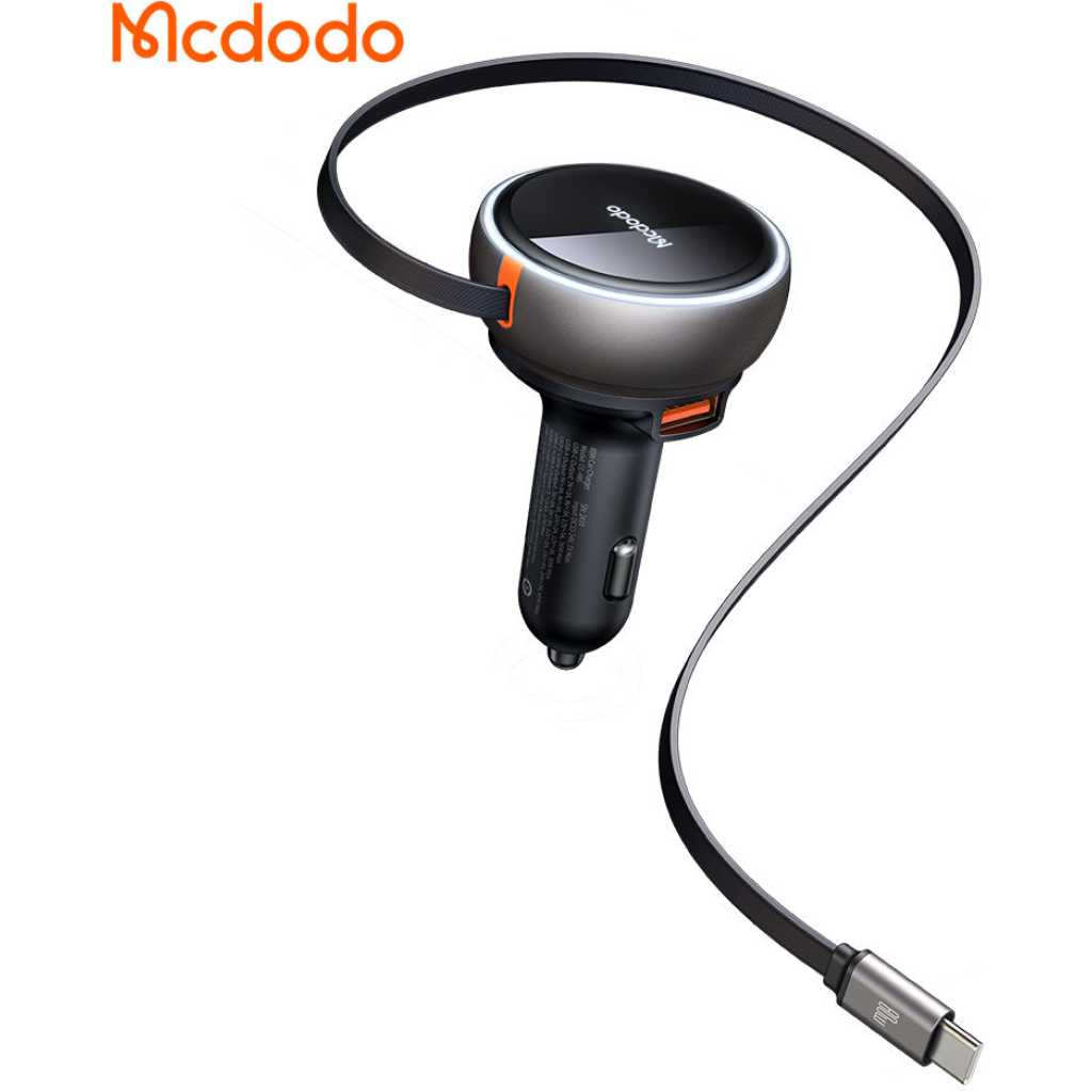 Mcdodo 485 FreeGo 80W PD Car Charger Retractable Cable 80cm 80W PD3.0 PPS QC4+ AFC SCP Fast Charger in Car with USB-C Cable