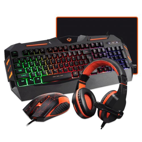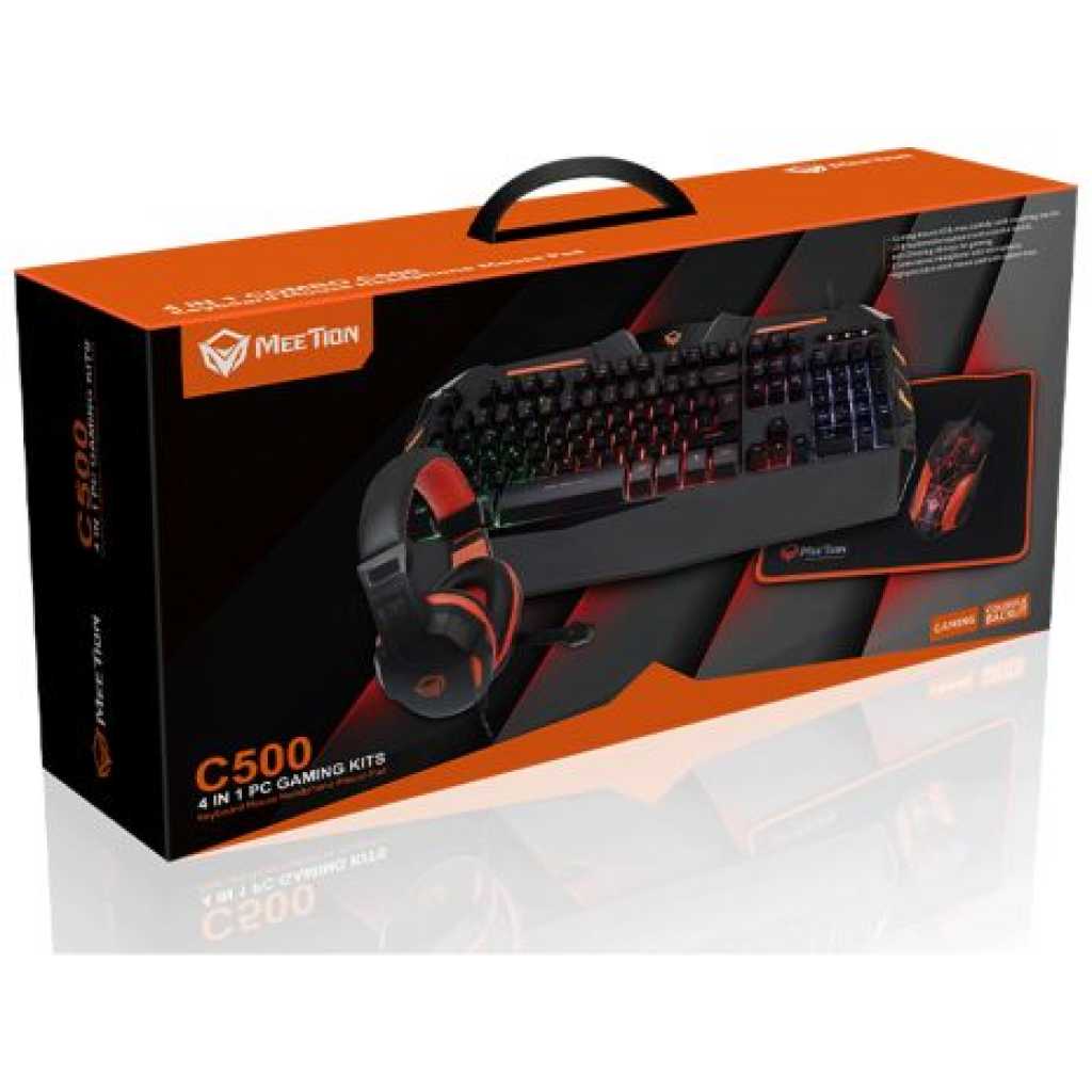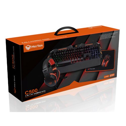 Meetion 4 in 1 Gaming Keyboard Mouse and Headset Bundle with Mouse Pad. MEETION C500 – 4 IN 1 PC GAMING KIT Meetion Gaming Keyboard 1) Colorful backlit with breather. 2) Comfortable and soft keys, Suitable for gamers3) Error-free running time, strokes: more than 10 000 000. 4) 19 keys anti-ghosting5) Compatible with Windows XP/Vista/7/8/10, Mac OS. 6) 12 Fn shortcut buttons for Multimedia, Internet, etc. 7) Gold plating USB Interfacе”.Meetion Gaming Mouse 1) Variable highlight. 2) Ergonomic symmetric design for Right/Left hand. 3) Soft touch, Two additional navigation buttons (Forward and Back). 4) Precision optical sensor A704. 5) DPI switch,resolution: 800-3200DPI. 6) Error-free running time, strokes: more than 3,000,000. 7) OS compatibility: Windows XP/Vista/7/8/10. 8) Number of keys: 7 + 1 (scroll wheel). Meetion Gaming Headpset1) Comfortable leather ear covers. 2) Adjustable leather headband. 3) High fidelity sound quality stereo unit: Speaker unite Φ40mm, Sensitivity 110db, Impedance 32Ω, Frequency 20Hz~20KHz. 4) High sensitivity microphone: Sensititivity -58dB±3dB, Omini-directional, input power 50mW. Volume controller. 5) 2*3.5mm stereo audio connector. Meetion Gaming Mouse PadCloth surface for high performance. Non-slip natural rubber back. Optical-friendly mouse pad for improved tracking. Dimensions: 320*240*5mm. Weight: 150g. Key Features: Meetion 4 in 1 Gaming Keyboard Mouse and Headset Bundle with Mouse Pad. Keyboard: Colorful backlit with breatheComfortable and soft keys, Suitable for gamersError-free running time, strokes: more than 10 000 00019 keys anti-ghosting, Gold plating USB Interface12 Fn shortcut buttons for Multimedia, Internet etc. Mouse: Ergonomic symmetric design for Right/Left handSoft touch, Two additional navigation buttons (Forward and Back)DPI switch, resolution: 800-3200Error-free running time, strokes: more than 3,000,000 Headphone: Comfortable leather ear coversHigh fidelity sound quality stereo unitHigh sensitivity microphone: Mouse Pad Cloth surface for high performanceNon-Skid natural rubber backOptical-friendly mouse pad for improved tracking