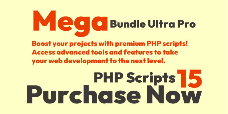 Mega Bundle Ultra Pro - PHP Scripts. Boost your projects with premium PHP scripts. Get useful tools and features designed to support your web development needs.