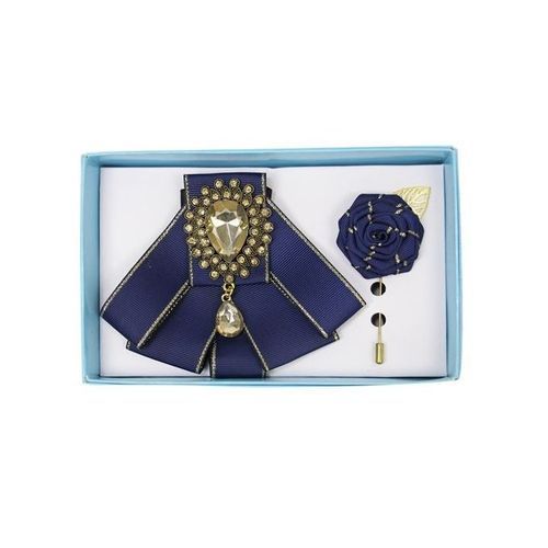 Men's Designer Rhinestone Detail Bow-Tie Set - Navy Blue. Designs May Vary