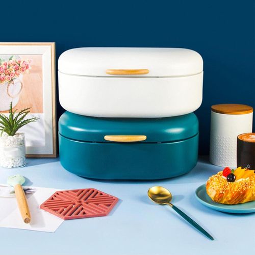 MULTIFUNCTION STORAGE CONTAINER: This bread box will neatly organize your bread, and keep your bread food refresh, but also can organize other items like cosmetics, stationery, kitchen gadgets. SAVE SPACE & KEEP TIDY: Sized 13.19×9.45×5.51 inch, this bread storage organizer occupy minimum space on your kitchen countertop. LARGE CAPACITY: Our bread bin box can hold loaves, pantry, waffles, chip and other food, keep your food away from water and dust. HIGH QUALITY MATERIAL: This kitchen storage bread container made of galvanized iron, coating surface, and not easy to deform, simply wipe clean. WIDE APPLICATION: Suitable for any kitchen, home, coffee shop or bakery. Specification: Material:Galvanized Iron Size Chart: Size: approx.335x240x140mm/13.19×9.45×5.51inch Package Includes: 1 Piece Bread Container Multi Purpose Food Organizer Storage Container Home for Storing Bread Loaf Dry Food Pastries Bread Storage Box food storage container Multifunctional storage container: this bread bin organizes your bread neatly and keeps your bread fresh, but can also organize other items such as cosmetics, stationery and kitchen helpers. Save space and keep order: with a size of 13.19 x 9.45 x 5.51 inches, you only take up little space on your kitchen countertop. Large capacity: can hold breads, pantry, waffles, chips and other foods and keep your food away from water and dust. High quality material: made of galvanised iron, surface coated, not easy to deform, just wipe clean. Suitable for any kitchen, home, cafe or bakery. Specification: Material: galvanised iron. Size Chart: Size: approx. 335 x 240 x 140 mm / 13.19 x 9.45 x 5.51 inches. Package includes: 1 x bread container.