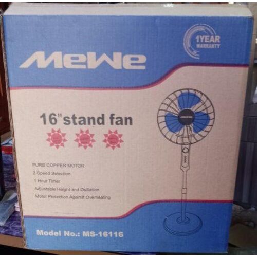 Electrical Tower Fan: This well-engineered pedestal fan by MeWe offers allows you to enjoy a comfortable and cool ambience both at your home or workplace. The sleek and elegant design makes it an ideal addition to your study area, lobby, hallway, bedroom and dining area. Intriguing Design: The MeWe standing fan embraces a 5-transparent blade leaf that offers maximum airflow. It can be adjusted to different heights as desired to ensure equal and maximum flow of air in a living space. Great Functionality: This 5-blade stand fan comes with a 3-speed switch and oscillation function to adjust the fan speed accordingly. You can adjust the speed comfortably with the help of included remote control. It also embraces a Korea guard ring that holds the mesh in place and adds to its durability and reliable performance. Excellent Performance: You can set this 3-speed pedestal fan to a 7.5 hours timer using the auto wind flow function to enjoy a comfortable night time. It also features a self-protection system that protects its functionality when overheated. Product Specification: The MeWe stand fan with remote control measures 16 in. in height and comes in a sleek black colour. It works efficiently and produces a low noise as it operates on an in-built 60W copper motor. Key Features: 3 SPEEDS SWITCH AND OSCILLATION FUNCTION AUTO WIND FLOW FUNCTION HEIGHT ADJUSTABLE SELF-PROTECTION WHEN OVER HEATED 5 TRANSPARENT BLADE LEAF KOREA GUARD RING LOW NOISE COPPER MOTOR AC220-240V ~ 50/60Hz 60W