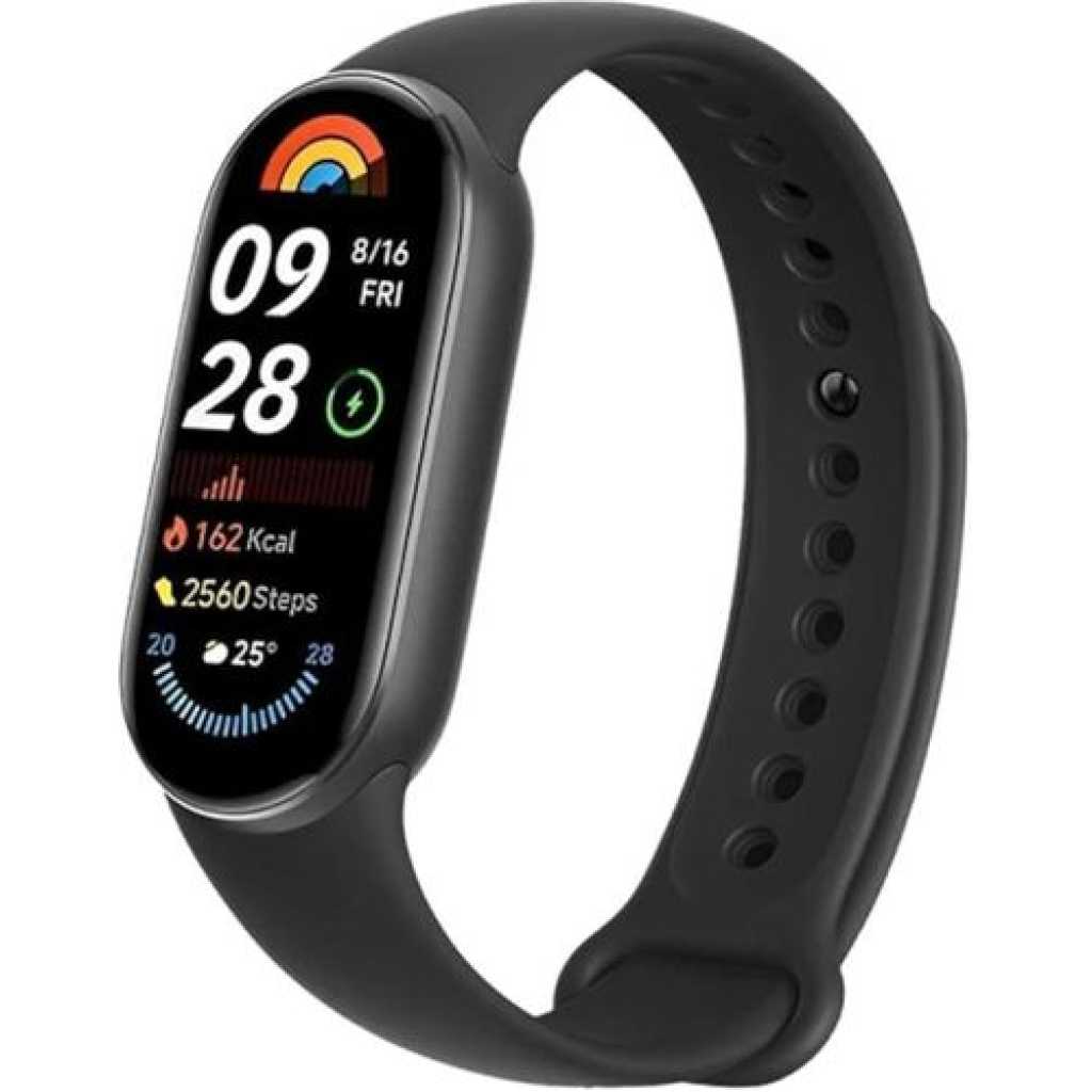 IMPROVED DISPLAY BRIGHTNESS: With an AMOLED peak display brightness of 1200 nits, view data with ease even under direct sunlight. Equipped with a light sensor module, it accurately detects ambient light to automatically adjust screen brightness for more comfortable viewing ELEGANT DESIGN: For the first time, the Xiaomi Smart Band utilises aluminium alloy frames in different colours such as Midnight Black, Glacier Silver, Mystic Rose and Arctic Blue. Pair it with a range of stylish straps, allowing you to show off your individuality with every flick of your wrist HIGH-PRECISION SENSORS: The monitoring module has been significantly improved for more precise monitoring of workouts and overall health. Specifically, the latest generation sensors for: heart rate monitoring, Continuous blood oxygen saturation monitoring, Continuous stress monitoring, Breathing training, Female health management OVER 150 SPORTS MODES: Stay motivated with advanced algorithms covering metrics such as maximum oxygen consumption, recovery time, training results, load and more. Accurate tracking, no matter whether you’re cycling outdoors or sweating it out indoors LONG-LASTING BATTERY AND WATER RESISTANCE: Thanks to professional low-power consumption sensors and smart power consumption algorithms, Xiaomi Smart Band 9 has an extraordinary battery life of 21 days with regular use. In addition, it is water resistant and you can wear it while swimming: it withstands pressure equal to a depth of 50 meters Key Features: Operating System Tizen 4.0 Memory Storage Capacity 32 MB Special Feature Heart Rate Monitor, Activity Tracker Battery Capacity 233 Milliamp Hours Connectivity Technology Bluetooth Wireless Communication Standard Bluetooth Battery Cell Composition Lithium Ion GPS No GPS Shape Rectangular Screen Size 1.6 Inches