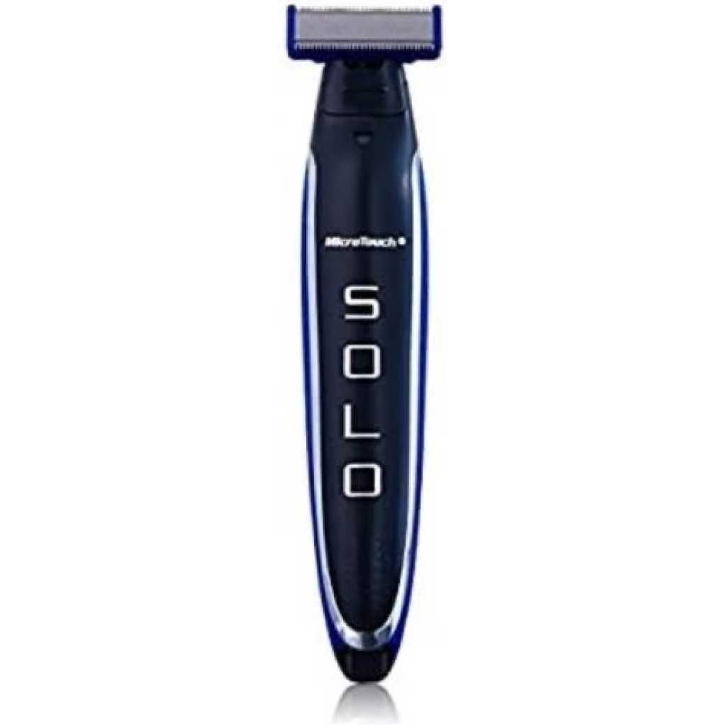 Shave, Trim, Shape and Edge with MicroTouch Solo, the hyper-advanced, full body razor, that trims, shapes and edges with micro precision. Convenient and easy to travel with – does not require water or shaving cream, so there’s no mess. The built-in lithium-ion battery lasts 45 minutes and conveniently recharges with an included USB cable. MicroTouch Solo all-in-one razor cuts through the thickest beards and leaves no nicks, no bumps, no razor burn, no irritation and no in grown hairs. Your Beard. Your Body. Your Way. One tool does it all. Key Features: Perfect for precision grooming Completely safe to the touch Pivoting head for perfect grooming on any surface Engineered with German Stainless Steel blades Zero skin irritation – no cream, no soap, no water