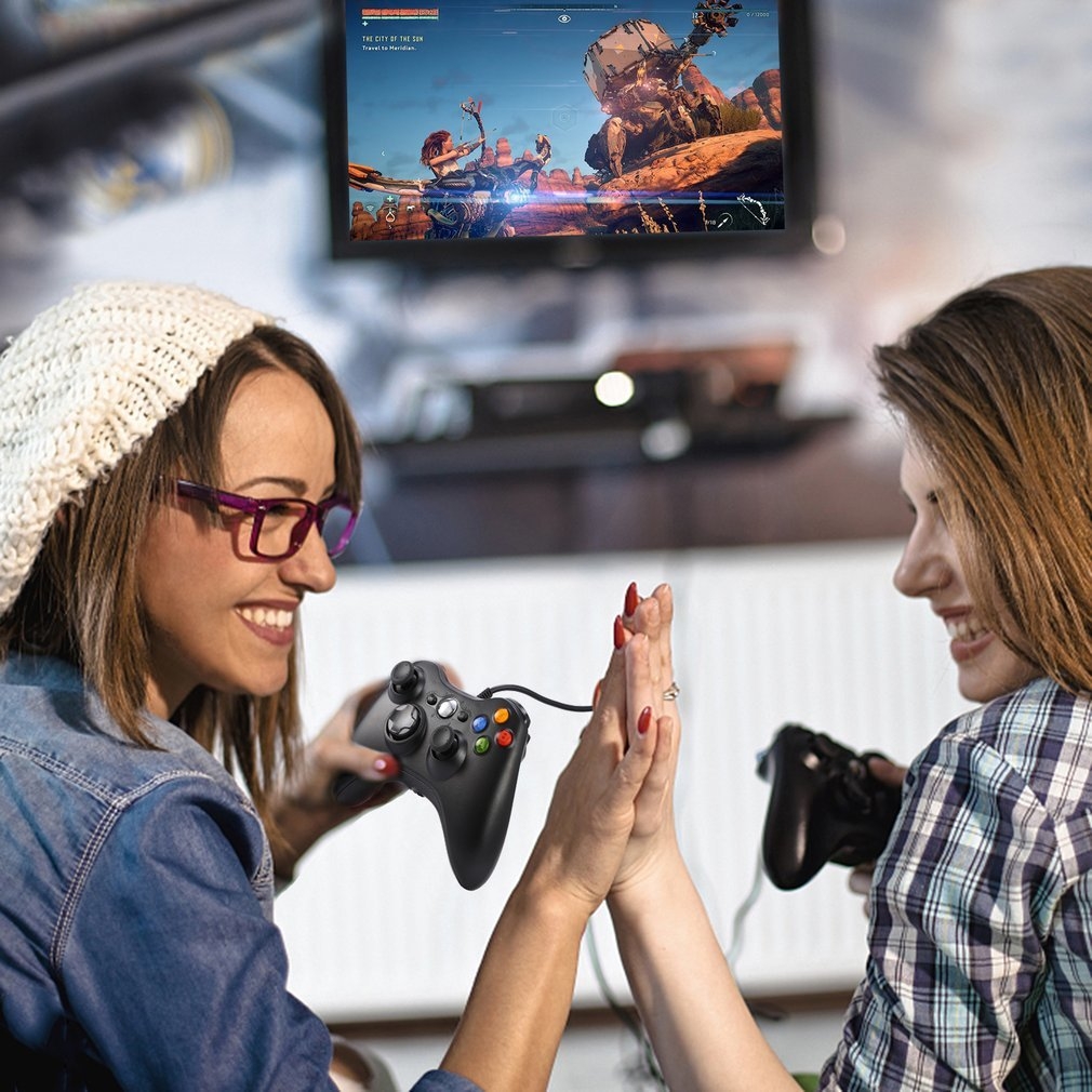 Key Features: Microsoft Xbox 360 And PC USB Wired Controller – Black Precision Wired Controller for Microsoft Xbox 360 Game System. The same size as the Xbox 360 controller. It’s a perfect replacement or an extra controller for you. With improved ergonomic design. Enables maximum comfort and endless gameplay. New left and right shoulder buttons are designed for ease of use. Descriptions: Two analog pressure-point triggers, two vibration feedback motors, and one eight-way directional pad are included. 3 levels of Rumble Control- Full/Medium/Low or Off to match your personal preference. Integrated headset port for Xbox Live play. The centralized glowing for Xbox Guide Button grants you quick access to your digital movie, music and games libraries. Easily jump for Xbox Gamer Guide or for Xbox Live Marketplace. Cable Length: about 160-170CM Specification: Type: Gamepads Joystick PC Model: Remote Controller For Xbox 360 Material: Plastic Color: Black, White, Blue, Red Size: 150X100X55mm For Microsoft for Xbox 360 Game System. Note: Made by a third-party company, not by Microsoft. Compatible: for Xbox 360, for Xbox 360 Slim, for Win7 system. Package Include : 1 x Wired Gamepad for Xbox 360 Notes: 1. Due to the difference between different monitors, the picture may not reflect the actual color of the item. We guarantee the style is the same as shown in the pictures. 2. Due to personal measurement techniques being different, there may be a 1-3 cm error of the physical. Thank you!
