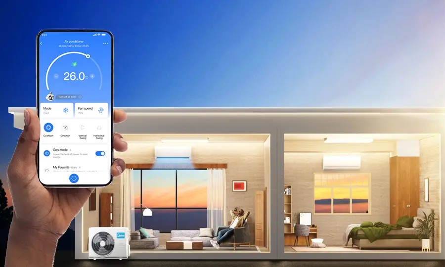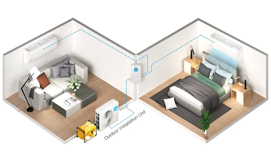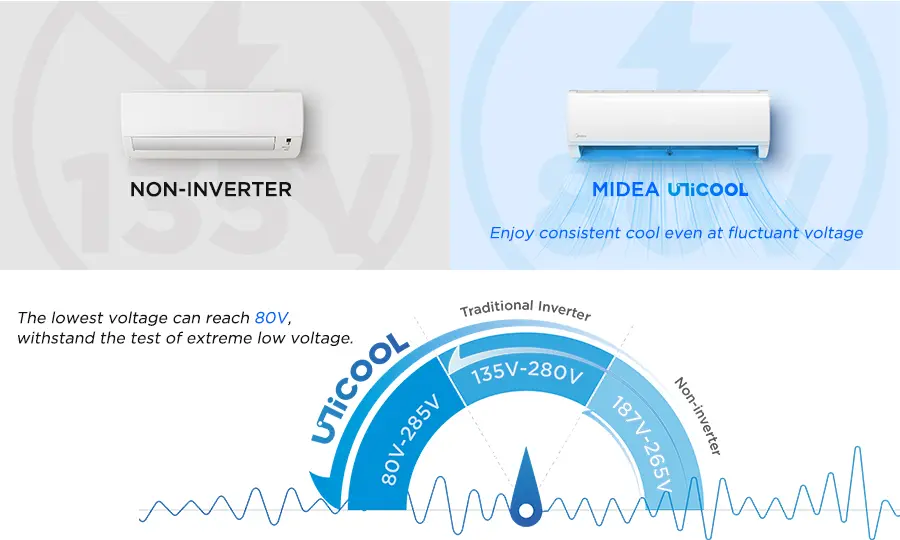 Midea 12000 BTU UniCool Wall Split Inverter Air Conditioner MSGP12C-12CRFN8 w/ Built-in AVS, WiFi Control, Air Purification, R410a, - White. 5-levels GenGearBetter maintain your electricity at home by maximizing the generator efficiency in 5 levels. Built-in AVS (80V – 285V)Support wide voltage protection to achieve stable cooling experience from 80V – 285V. One-drive-two ModeAllowing the one-drive-one unit to operate two ACs' separate cooling. The one that is turned on earlier will stop while another one will start cooling at the same time. WIFI ControlJust with one click on the phone, you can control your AC without the limit of location and time with Midea home smart app.
