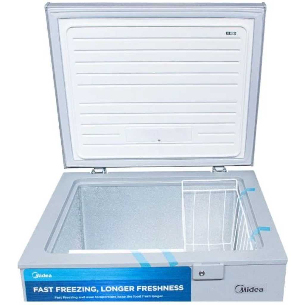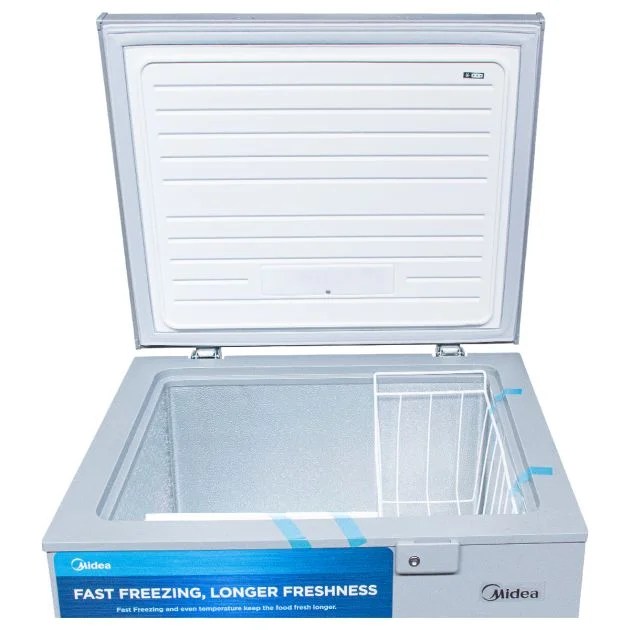 The MIDEA MDRC207FZG43NGG chest freezer is ideal for those looking for a compact, efficient, and economical appliance to store their food in the long term. With a capacity of 142 liters , it is perfect for small households or additional use in shops. Maximum energy efficiency Featuring a very economical energy class , this freezer allows you to save up to 15% on energy , thanks to an optimized consumption of 0.8 kW/h . Its cooling system uses R600a refrigerant , an environmentally friendly gas, combined with cyclopentane insulation for better thermal efficiency. Compact and quiet design With small dimensions of 21 x 28 x 33 cm, the MDRC207FZG43NGG model fits easily into tight spaces while providing sufficient volume to store your frozen products. Its noise level of 40 dB guarantees quiet operation, allowing you to enjoy a quiet environment, whether in your kitchen or your shop. Practical and secure This freezer has a removable basket for easy storage and a security system with keys to protect your food. Its climate class T (Tropical) allows it to operate efficiently even in hot environments. In addition, a 1W lamp ensures optimal visibility inside. The MIDEA MDRC207FZG43NGG is the perfect choice to combine performance, energy saving, and compact design Key Features: Midea 142 Litre Chest Freezer MDRC207FZG43NGG – Grey. Product Type: Chest Freezer Brand: MIDEA Model: MDRC207FZG43NGG Capacity: 142L Color: Grey Dimensions: L 21 x D 28 x H 33 cm Voltage: 220-240V Frequency: 50Hz Refrigerant: R600a Energy consumption: 0.8KW/h Climate class: T (Tropical) Energy class: Very economical (Savings up to -15%) Noise: 40dB Number of baskets: 01 Net weight: 25kg Nominal lamp power: 1W Blowing gas for insulation: CYCLOPENTANE Security: Yes with keys