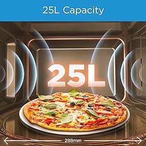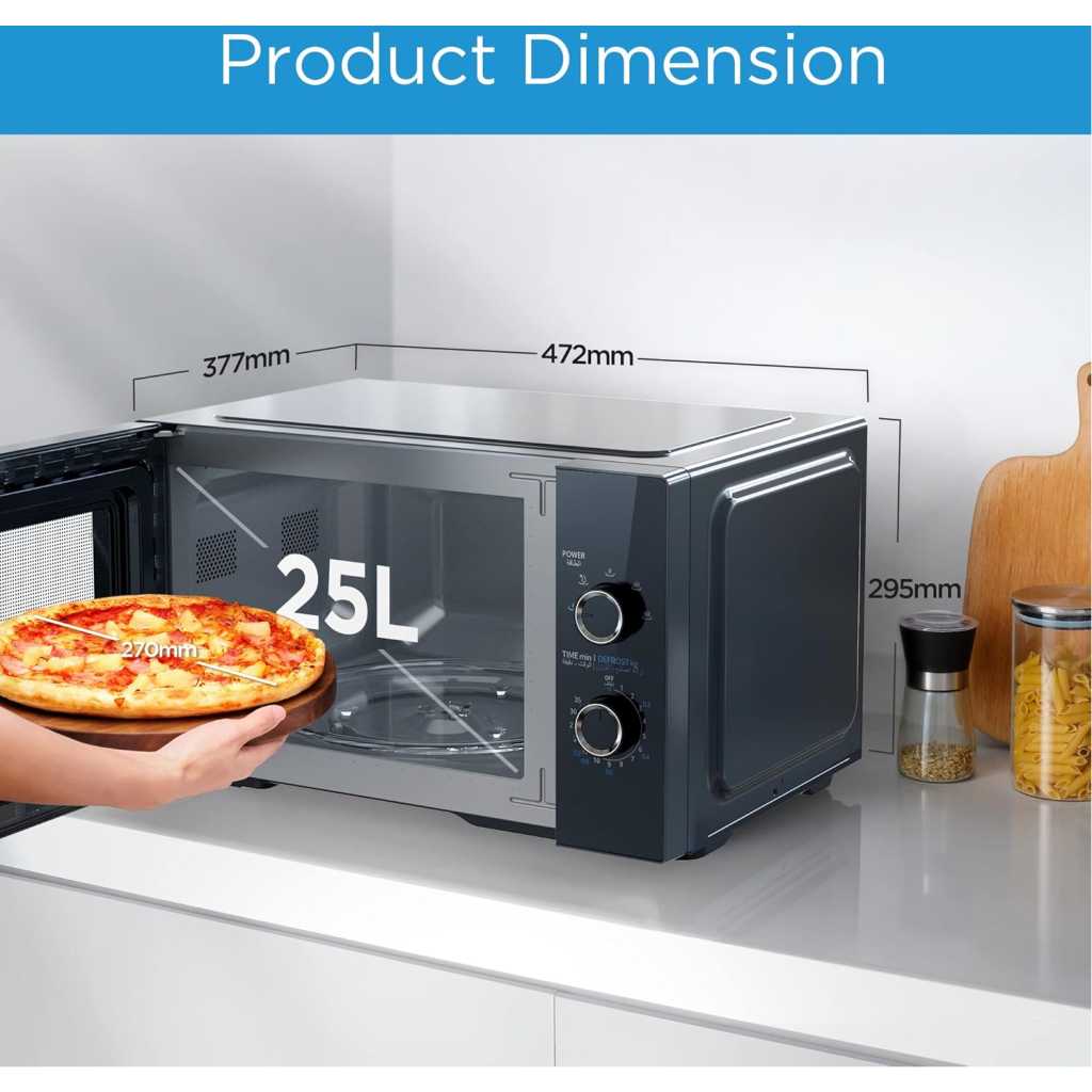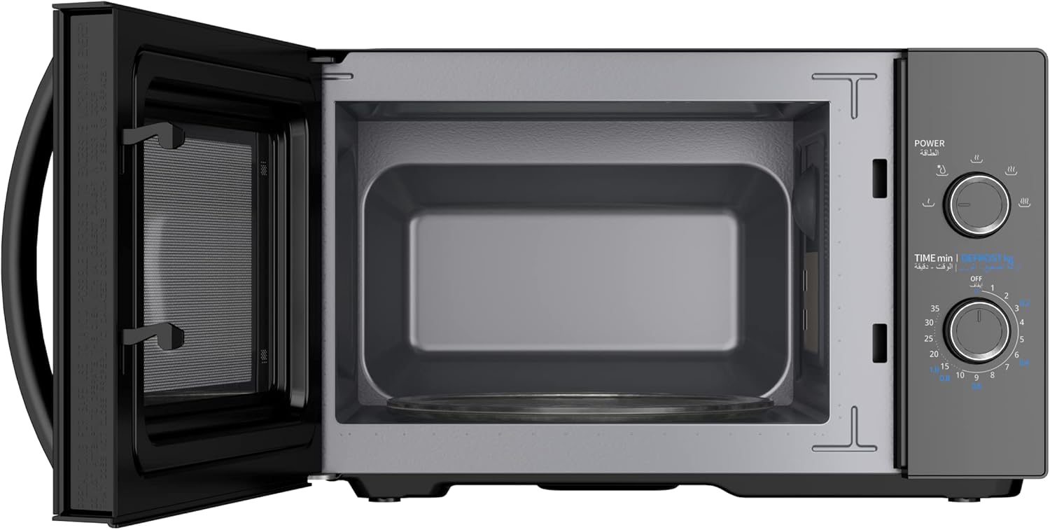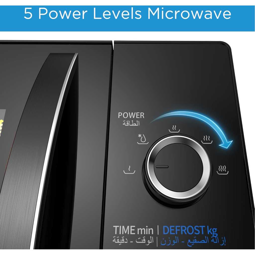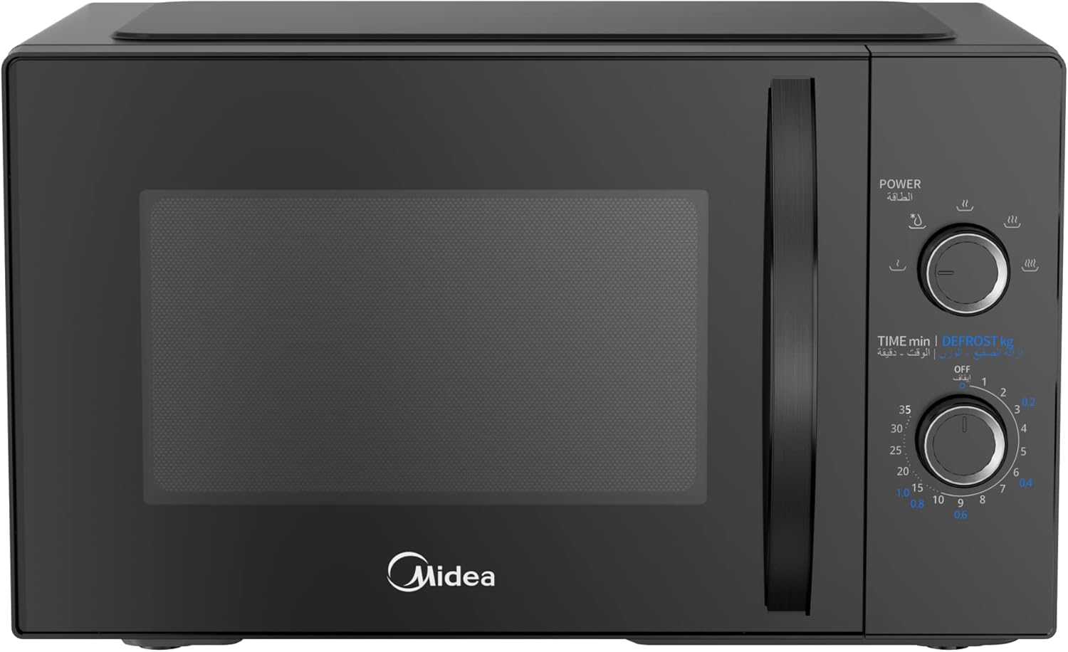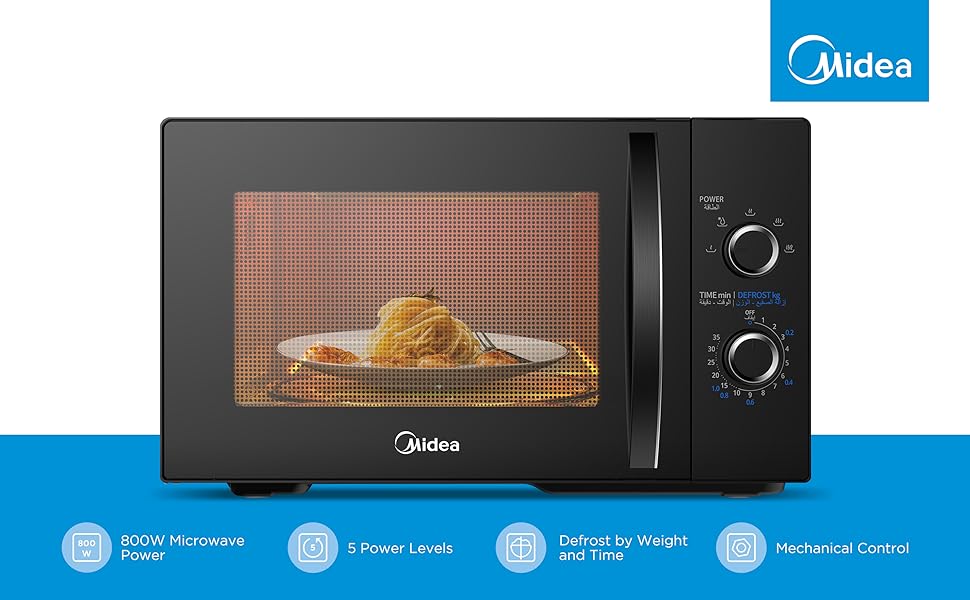 Key Features: Midea 25 Liters Solo Microwave Oven with 5 Power Levels, 800W, Child-Safety-Lock, Defrost Function, 35 Minutes Timer, Fast Reheat, Pull Open Door Handle, Good for Home & Office, Black, MM8P022KG-BK. ✅【MICROWAVE】 It offers five levels of microwave power to let you select the intensity at which you want your food cooked or heated ✅【POWERFUL】 800 Watts Power helps reheating fast and quick, you can even cook, defrost & boil delicious food & beverages ✅【EFFICIENT】 Manual defrost feature that allows for defrosting and cooking in a single step, you can defrost up to 1 kg of frozen chicken, fish or meat in 15 minutes ✅【CONVENIENT】 Door handle- Pull opening Door makes light work of opening and closing the door and a rotary dial control for simple operation ✅【CHILD SAFETY LOCK】 Open the child lock press 3 times the display | Turn off the child lock press 3 times the display