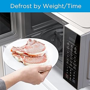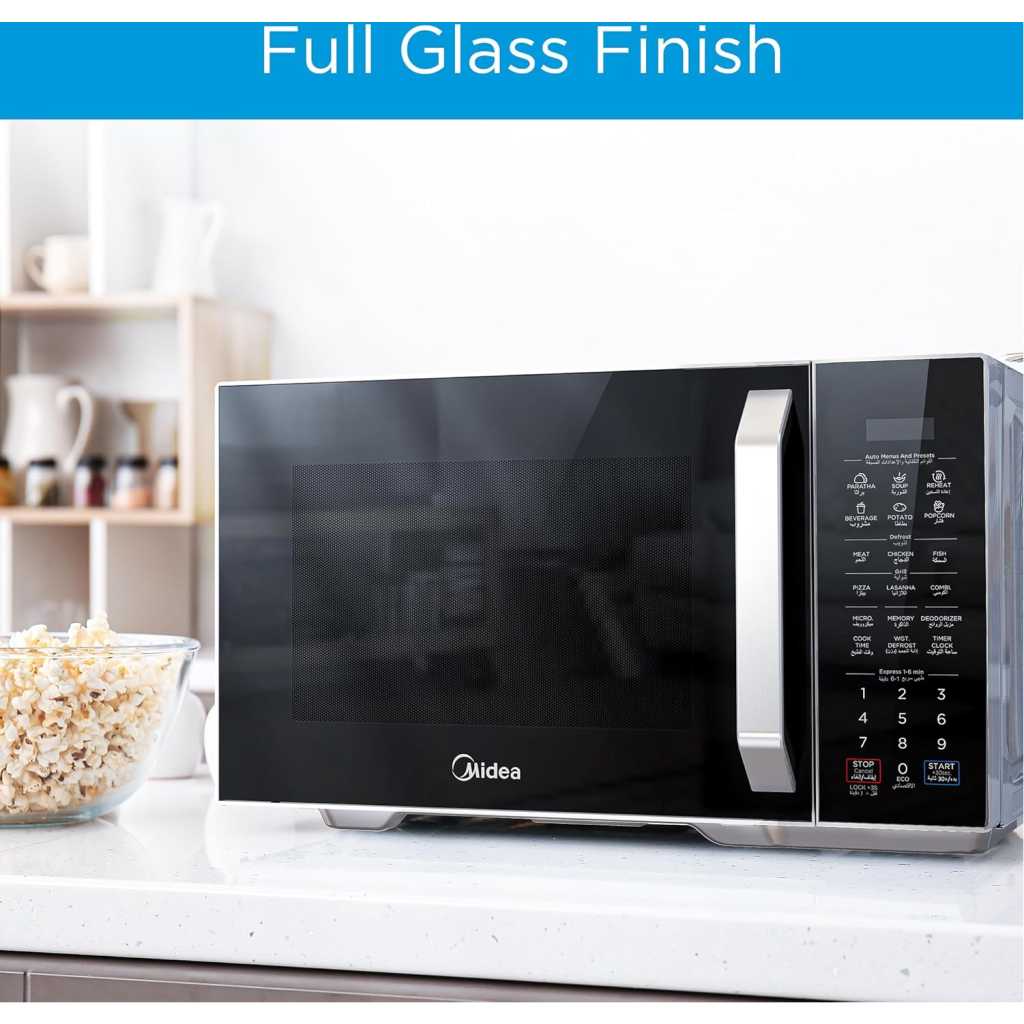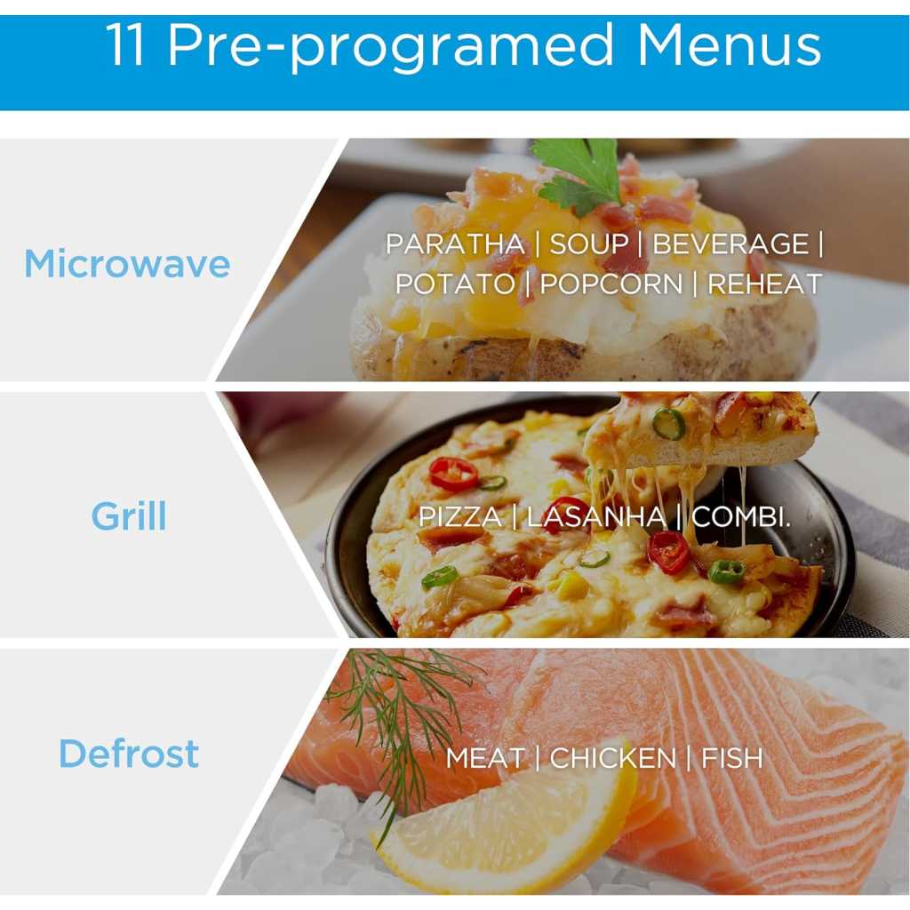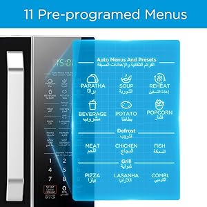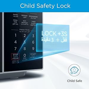 Key Features: ✅【MICROWAVE】 It offers 11 levels of microwave power to let you select the intensity at which you want your food cooked or heated. With the Grilling Function Food can be grilled, roasted or cooked with little to no hassle ✅【POWERFUL】 900 Watts Power helps reheating fast and quick, you can even cook, defrost & boil delicious food & beverages. Digital Control – Display – LED Display with Timer ✅【EFFICIENT】 Manual defrost feature that allows for defrosting and cooking in a single step, you can defrost up to 1 kg of frozen chicken, fish or meat in 15 minutes ✅【CONVENIENT】 Door handle- Pull opening Door makes light work of opening and closing the door and a rotary dial control for simple operation ✅【CHILD SAFETY LOCK】 Open the child lock press 3 times the display | Turn off the child lock press 3 times the display.