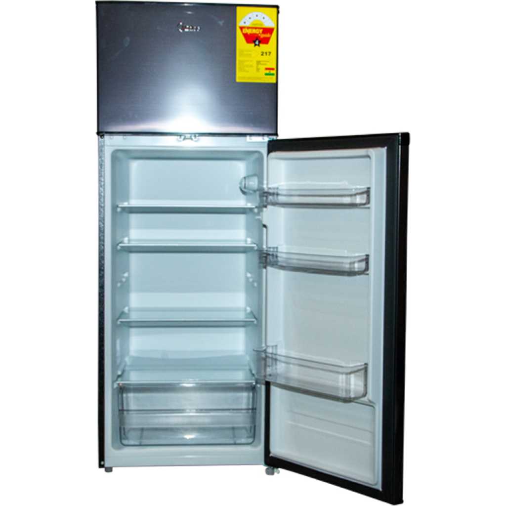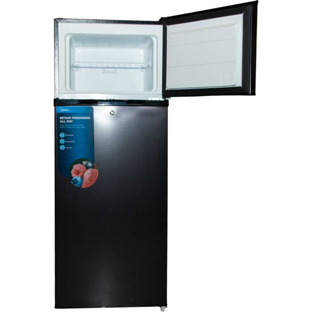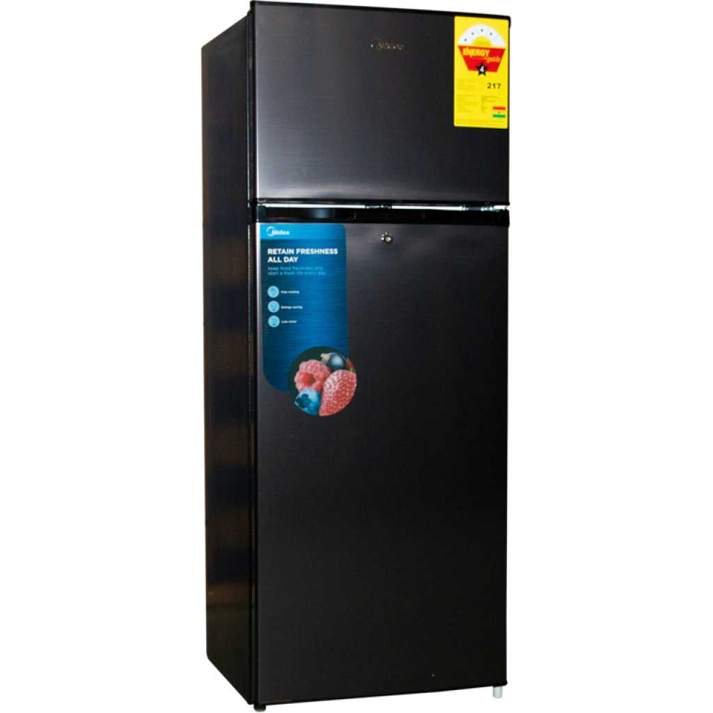 Midea 294L Fridge, (204L Net) Double Door Top Mount Freezer Defrost Refrigerator MDRT294 – Black. Product Name: free standing fridge freezer Colour: white Height: 143 cm Width: 55 cm Energy class: E Energy consumption: 219 kWh/year Total net volume: 204 Lt Fridge volume: 163 Lt Freezer volume: 41 Lt Noise level: 40 dB/C Cooling system: Single System Dimensions: W: 55 cm x D: 55 cm x H: 143 cm Weight: 37 kg Number of shelves in Fridge: 4 Number of shelves in Freezer: 1 Drawer for vegetables and fruits: 1 Refrigerator Internal LED Lighting Reversible door opening Warranty: 2 Years Midea Refrigerator with net capacity of 204L and LowFrost cooling system with manual defrost. Features has 3 adjustable shelves in maintenance, a bottle holder on the door and big vegetable drawer. In addition it has internal LED lighting and the ability to change the direction of the door. Key Features: Midea 294L Fridge, (204L Net) Double Door Top Mount Freezer Defrost Refrigerator MDRT294 – Black. Product Name: free standing fridge freezer Colour: white Height: 143 cm Width: 55 cm Energy class: E Energy consumption: 219 kWh/year Total net volume: 204 Lt Fridge volume: 163 Lt Freezer volume: 41 Lt Noise level: 40 dB/C Cooling system: Single System Dimensions: W: 55 cm x D: 55 cm x H: 143 cm Weight: 37 kg Number of shelves in Fridge: 4 Number of shelves in Freezer: 1 Drawer for vegetables and fruits: 1 Refrigerator Internal LED Lighting Reversible door opening Warranty: 2 Years