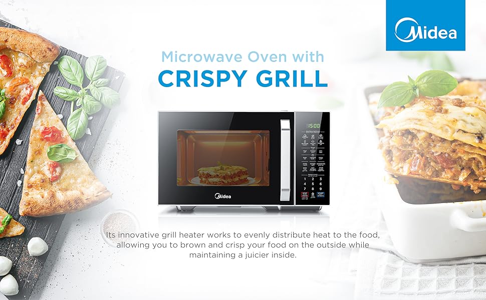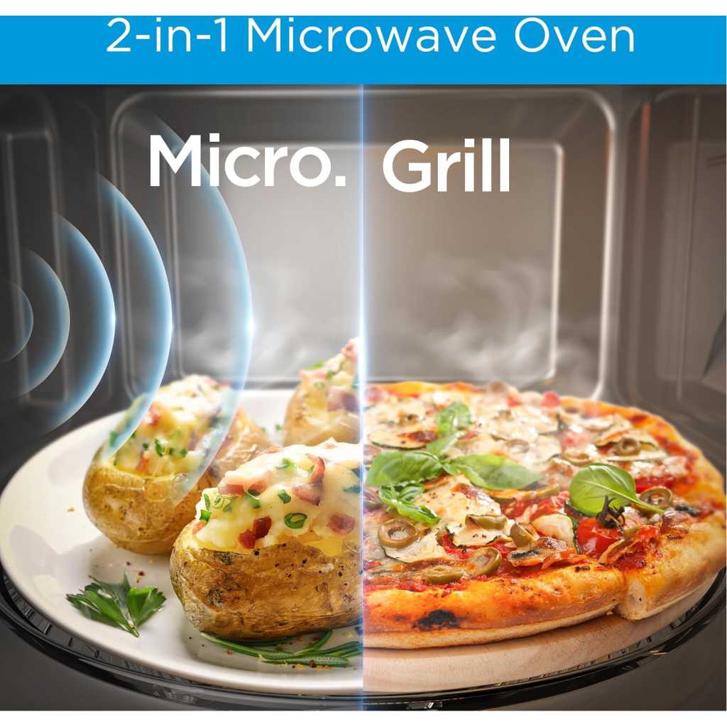 Key Features: ✅【MICROWAVE】 It offers 11 levels of microwave power to let you select the intensity at which you want your food cooked or heated. With the Grilling Function Food can be grilled, roasted or cooked with little to no hassle ✅【POWERFUL】 900 Watts Power helps reheating fast and quick, you can even cook, defrost & boil delicious food & beverages. Digital Control – Display – LED Display with Timer ✅【EFFICIENT】 Manual defrost feature that allows for defrosting and cooking in a single step, you can defrost up to 1 kg of frozen chicken, fish or meat in 15 minutes ✅【CONVENIENT】 Door handle- Pull opening Door makes light work of opening and closing the door and a rotary dial control for simple operation ✅【CHILD SAFETY LOCK】 Open the child lock press 3 times the display | Turn off the child lock press 3 times the display.