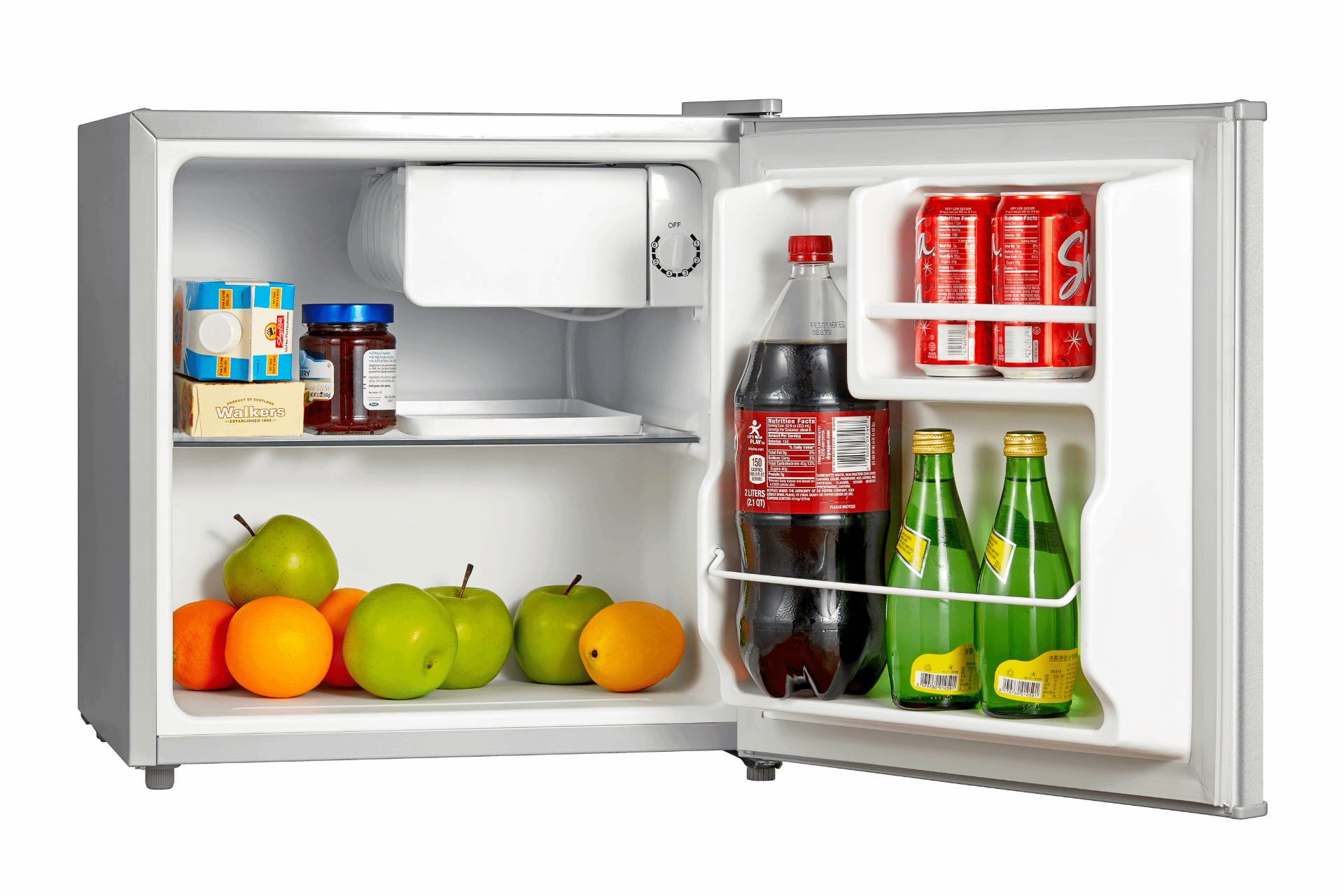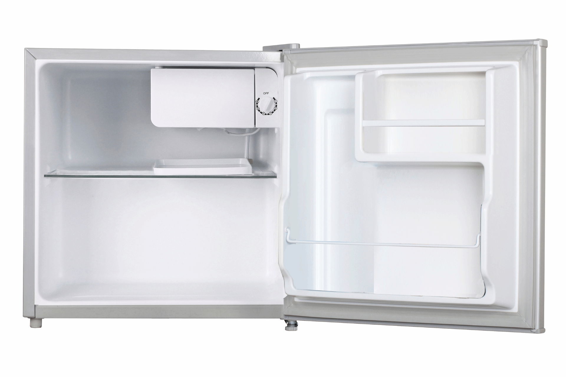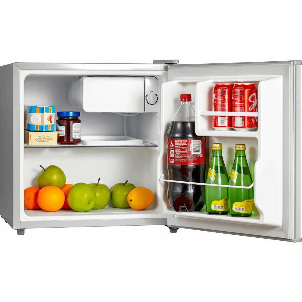Midea 50L Mini Bar Refrigerator MDRD86FGG – Silver Midea’s 50L. Compact Refrigerator keeps your produce fresh for longer and offers plenty of freezer space for your frozen favorites. Easily set chilling preferences with mechanical temperature control and enjoy hassle-free cleaning with the manual defrost setting. Thanks to its adjustable legs and reversible door, you can perfectly fit this compact refrigerator anywhere in your kitchen, office, dorm room, or basement.