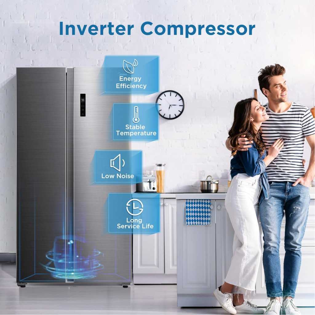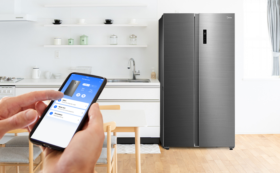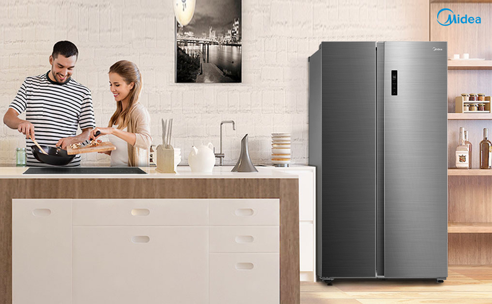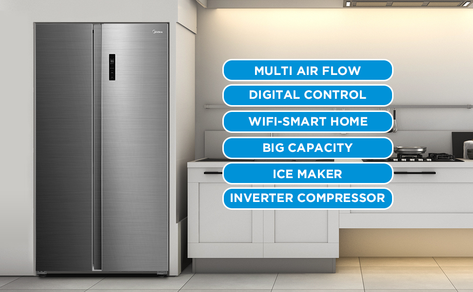 Midea 710L Gross & 510L Net Side By Side 2 Door Refrigerator, Frost Free Fridge Freezer With Humidity Control, Electronic Touch Screen, Inverter Quattro, Adjustable Door Racks, Silver MDRS710