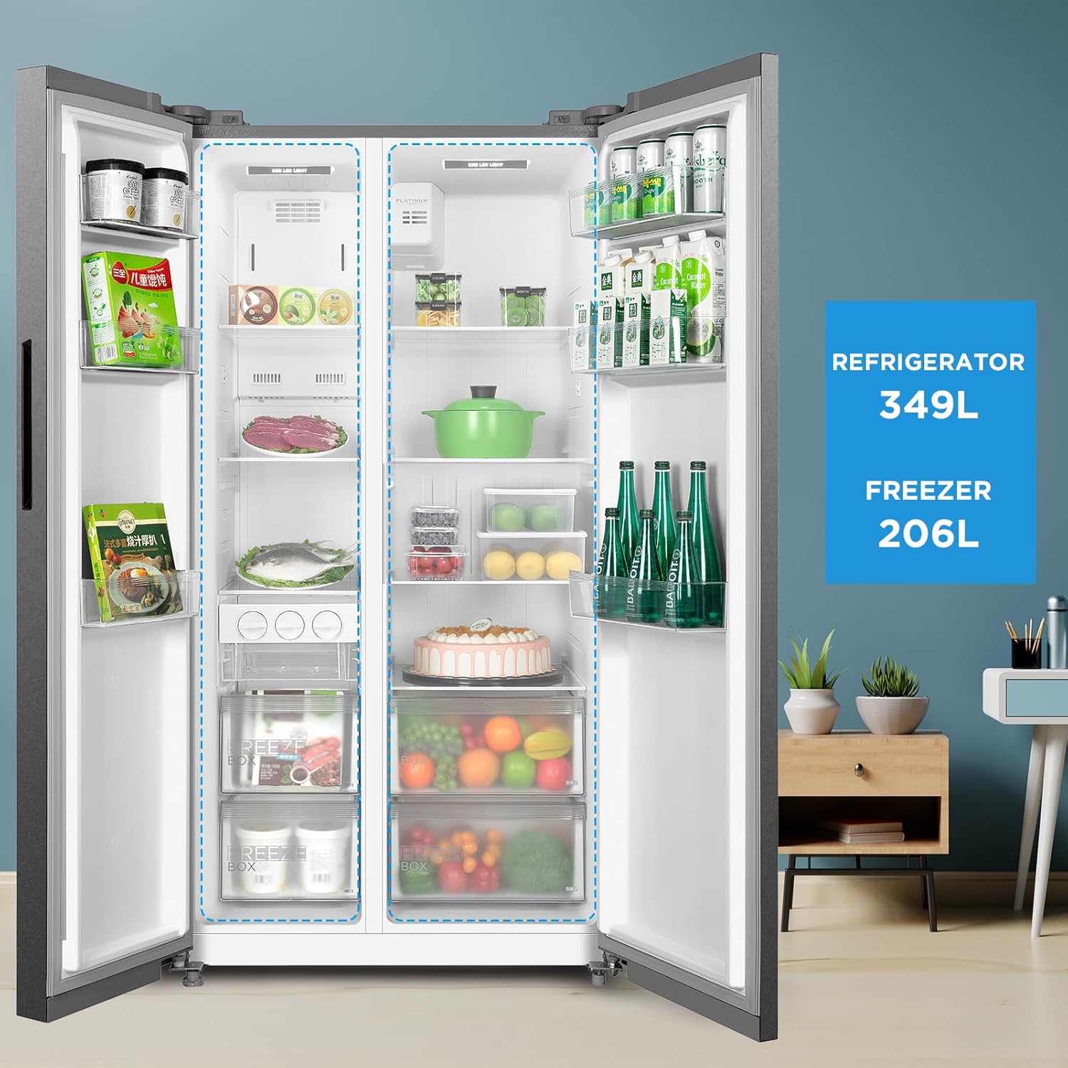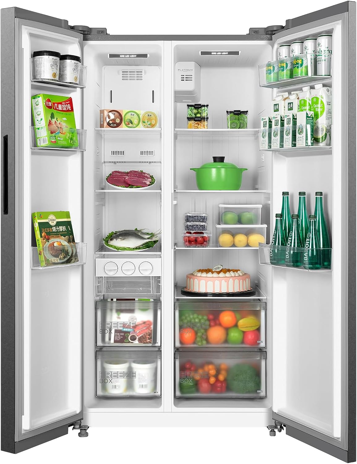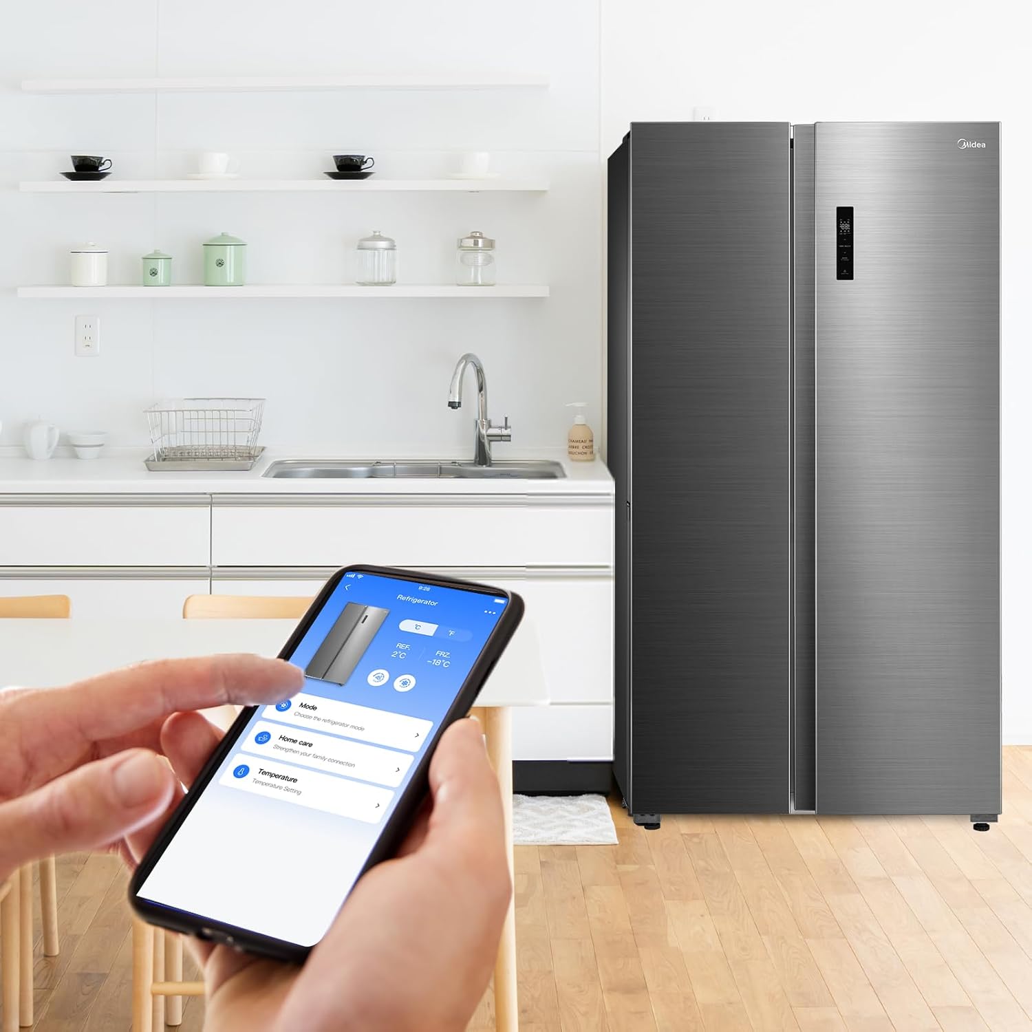 Midea 710L Gross & 510L Net Side By Side 2 Door Refrigerator, Frost Free Fridge Freezer With Humidity Control, Electronic Touch Screen, Inverter Quattro, Adjustable Door Racks, Silver MDRS710