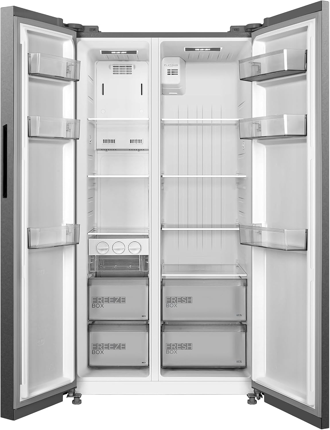 Midea 710L Gross & 510L Net Side By Side 2 Door Refrigerator, Frost Free Fridge Freezer With Humidity Control, Electronic Touch Screen, Inverter Quattro, Adjustable Door Racks, Silver MDRS710FIE46AED