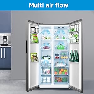Key Features: ELECTRONIC CONTROL : Features a control touch panel that allows easy operations and precise display of different compartment temperature MULTI-AIR FLOW : Multi-Air Flow equipped with multi directional air-flow systems that maintain a balanced circulation of cold air throughout the entire storage compartment LED DISPLAY : An LED display makes adjusting temperature more accurate and easier; It helps you to ensure you are storing your food at its optimum temperature EXPOSED HANDLE : Small details are considered to ensure the utmost convenience while still being aesthetically pleasing SIDE BY SIDE : Side by side refrigerators store food from top to bottom, making access easier and preventing you from having to bend down while searching for everyday items