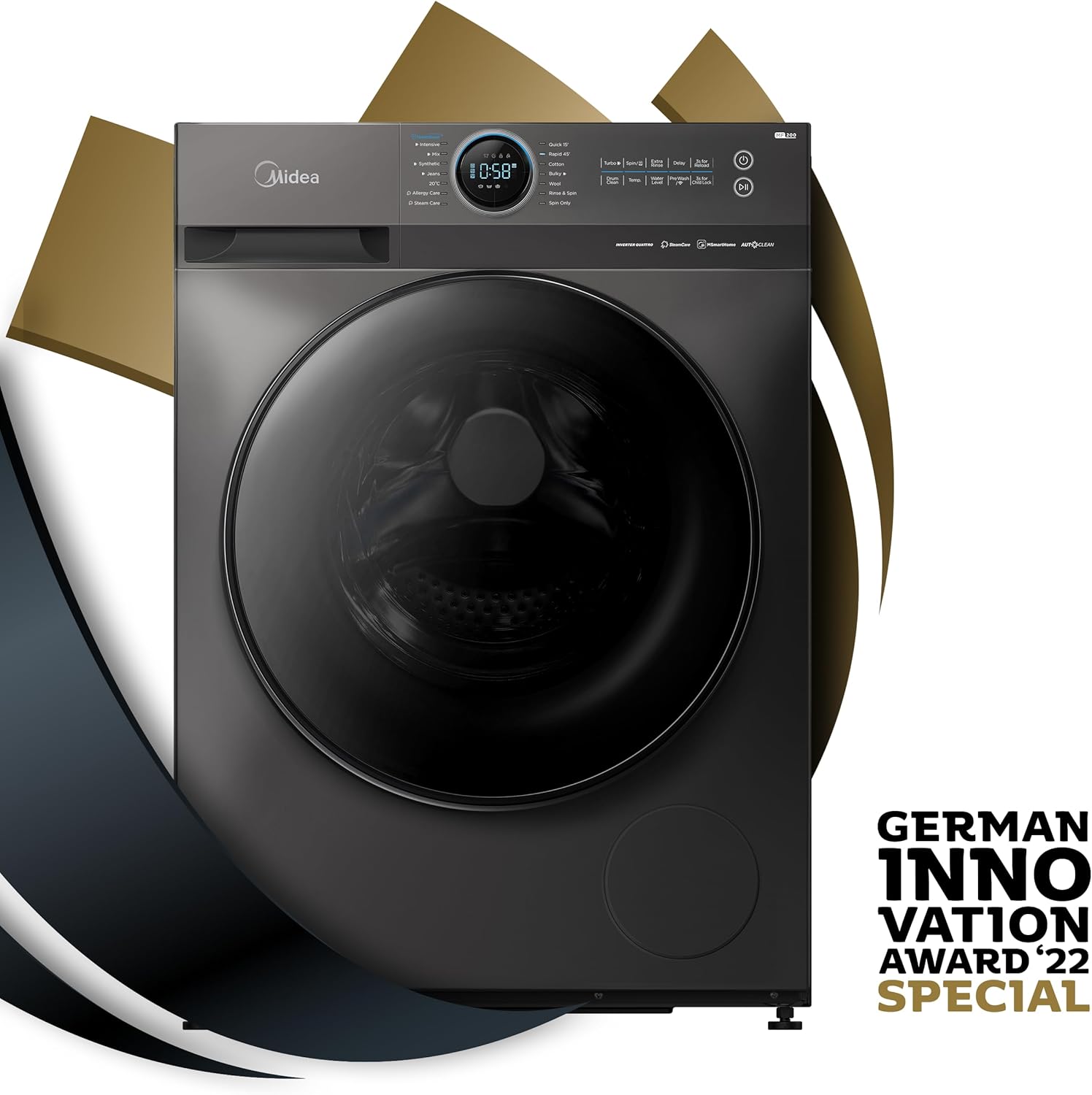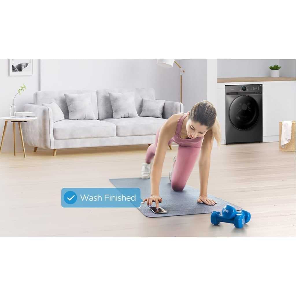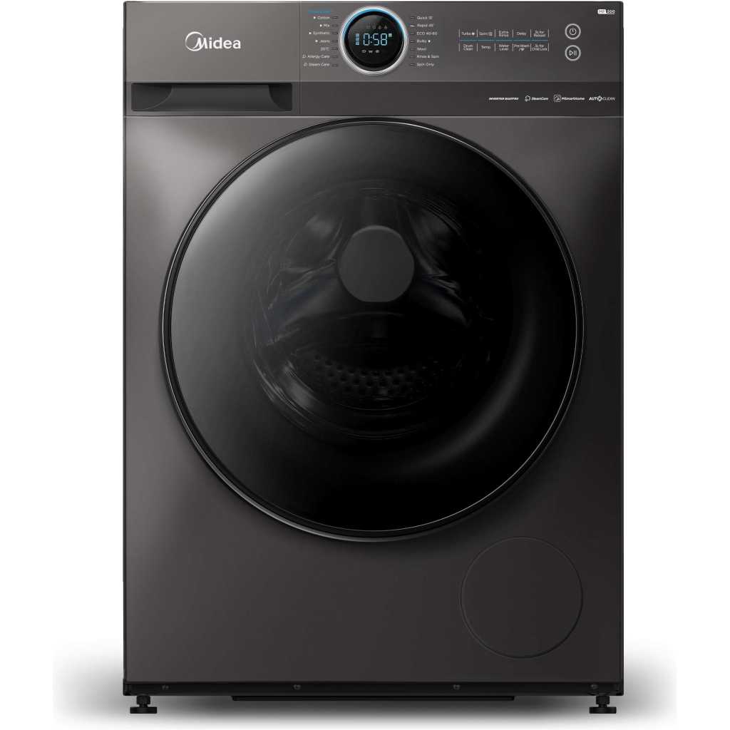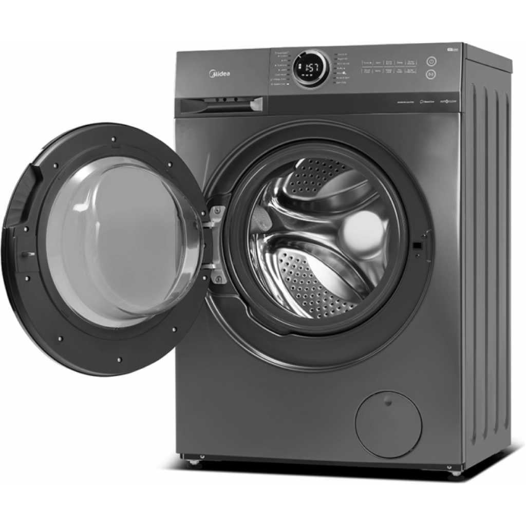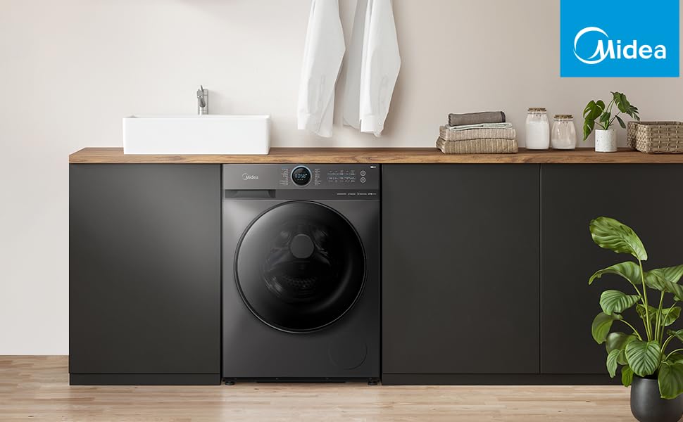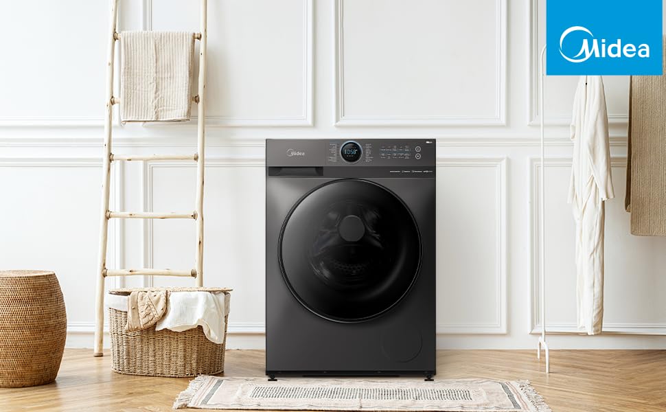Midea 8KG Front Load Smart Washing Machine with Lunar Dial, 1400 RPM, 14 Programs, Fully Automatic Washer, Digital LED Display, BLDC Inverter, Steam Care, Wi-Fi Connectivity, Titanium MF200W80WBTGCC. From the manufacturer
