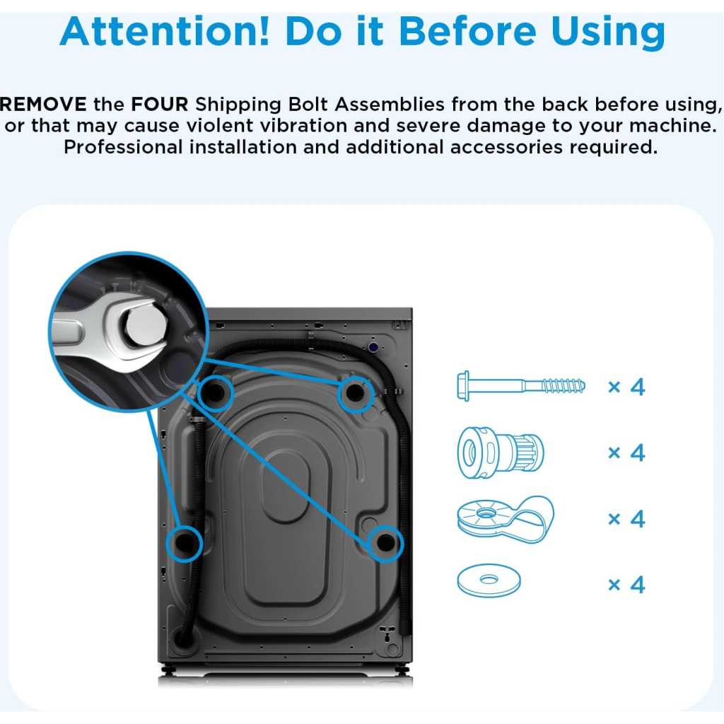 Key Features: Midea 8KG Front Load Smart Washing Machine with Lunar Dial, 1400 RPM, 14 Programs, Fully Automatic Washer, Digital LED Display, BLDC Inverter, Steam Care, Wi-Fi Connectivity, Titanium MF200W80WBTGCC. 1. 【LUNAR DIAL】 This is one of the most unique and special solutions included in our washing machine – a designer Lunar dial which combines a practical display with a convenient dial switch. Choose a program and then you will see its details on a round display, which has been inspired by a full moon 2. 【Wi-Fi CONNECTIVITY】 Connect your washing machine to Wi-Fi through MSmartHome App. You can easily control your laundry cycles remotely whenever and whereever you are. Just unlock your favorite laundry program on your smart phone and enjoy unlimited possibilities 3. 【STEAM CARE】 Good hygiene goes hand in hand with care for the health of your loved ones. The Steam Care feature generates hot steam which removes up to 99.99 percent of germs and microorganisms before the main wash. This feature is particularly useful if there are any allergy-prone people in your household and you want all your clothes and textiles to be sterile 4. 【WIDE DOOR】 You’ll find that the Midea washer’s door are wider than the standard door, allowing you to put in a quilt, bedsheets or curtains with no problem – one motion is enough. A unique and elaborate door design make your washer present itself marvellously in your bathroom or kitchen 5. 【AUTO CLEAN】 A clean washer drum means hygienic laundry. An automatic drum cleaning program effectively flushes out any dirt 6. Please ensure to get 4 nut bolts removed from back panel during installation for longer life of machine and avoid noise, vibration