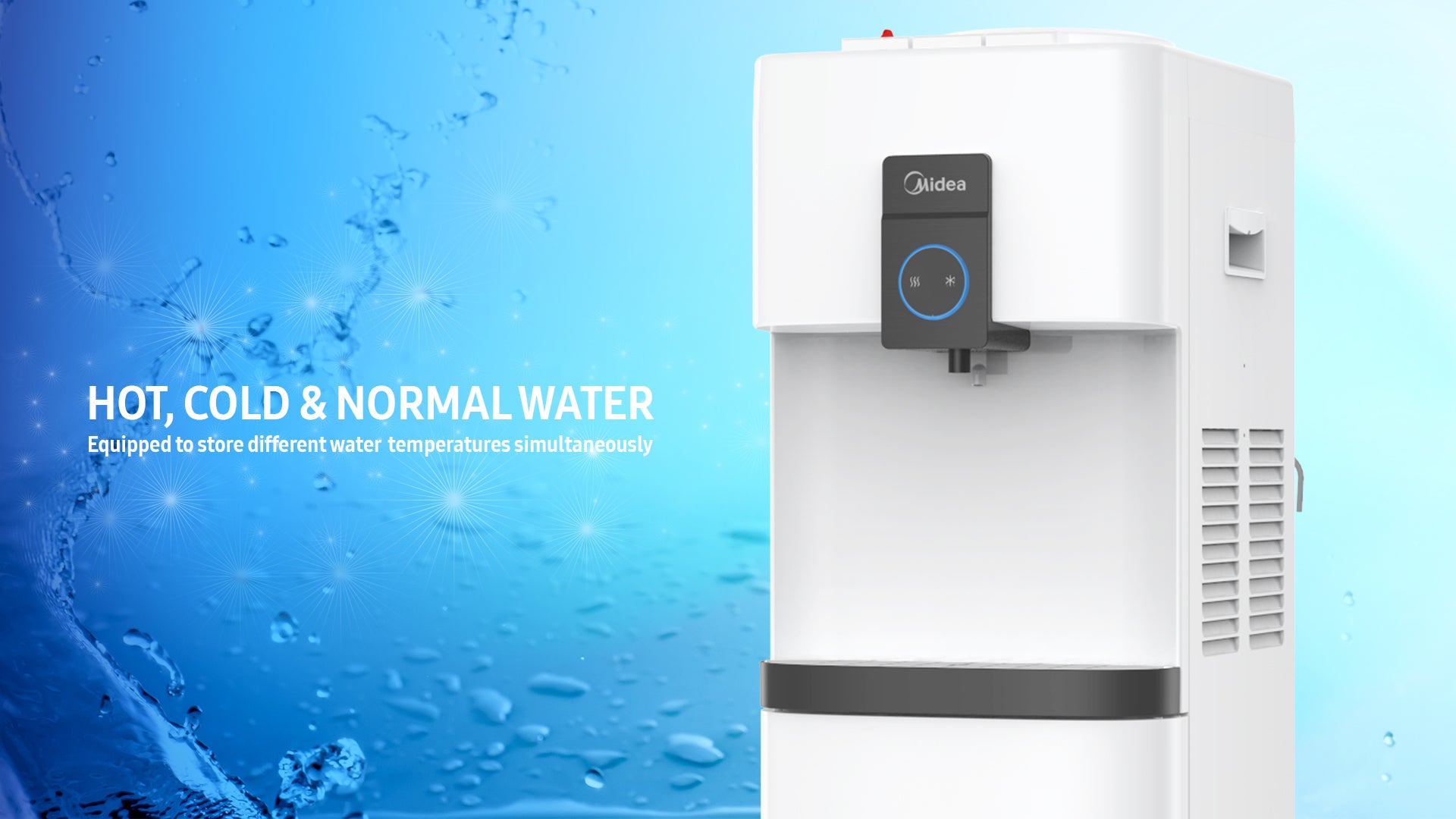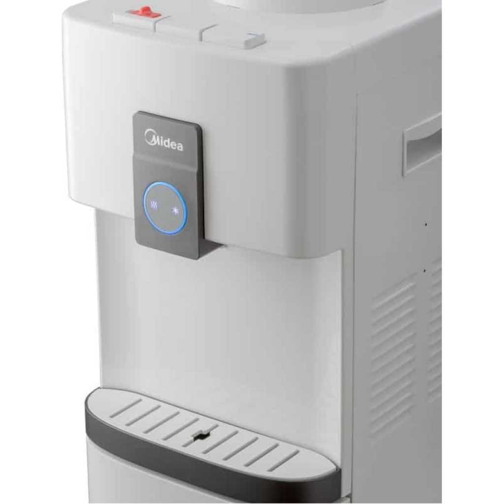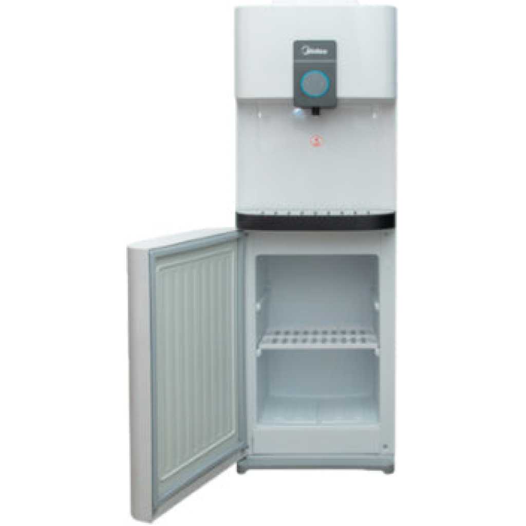 Key Features: Midea Water Dispenser YL2037S-W; (Hot, Cold, Normal) Free Standing Top Loading Water Dispenser With Refrigerator, Child Safety Lock – White. Convenient Top Controls 3 Temperatures at your choice Hot, room temperature and cold water High Dispensing Area for Various Cups Auxiliary Side Handles Built-in Mini Refrigerator with Ice Tray The temperature of the freezing area is -5°C Freeze 24 ice cubes every time – in 6 hours Freeze 96 ice cubes per day Temperature of the refrigeration area is 9°C Safety Lock