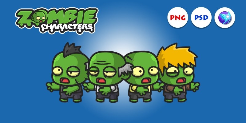 Mini Zombie Characters. 2D Zombie Game Characters