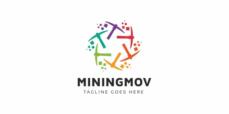 Mining Move Bitcoin Logo. A simple and excellent logo template suitable for a creative team, studio, developers, electronic etc.