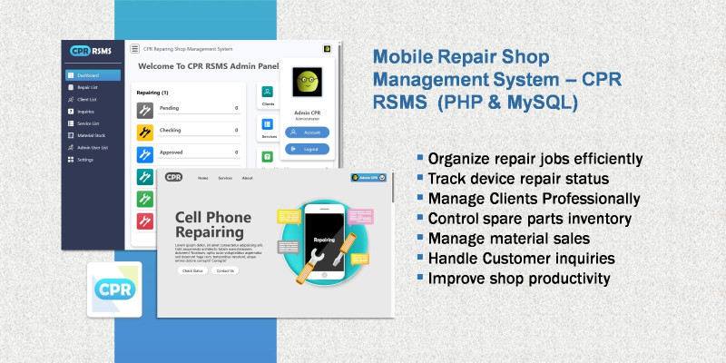 Mobile Repair Shop Management System- CPR RSMS. Mobile Repair shop CPR RSMS is a complete web-based management system for mobile phone repair shops.