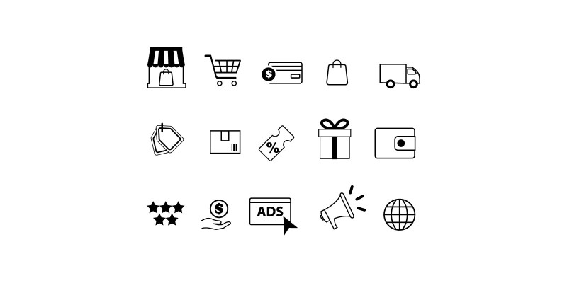 Modern E-commerce Icon Pack . A clean, versatile set of outline icons for online stores. Perfect for websites, apps, and marketing materials.