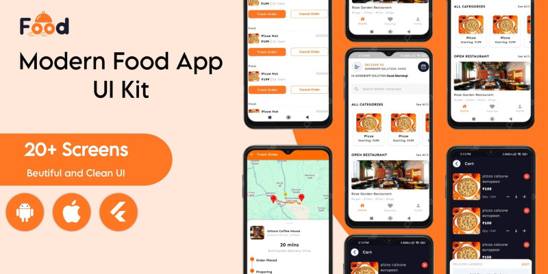 Modern Food App UI Kit - Flutter Template. A sleek, responsive, and highly customizable UI kit for building modern food delivery apps. Designed with Flutter, this template f