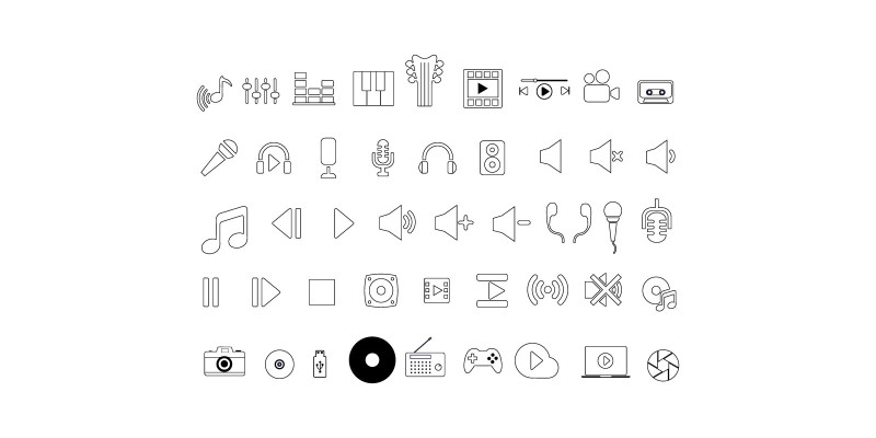 Modern Multimedia Icons Set on White Background