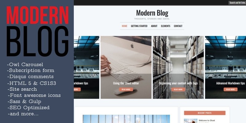 ModernBlog - Responsive Blogging Ghost Theme. Ideal template for a blog