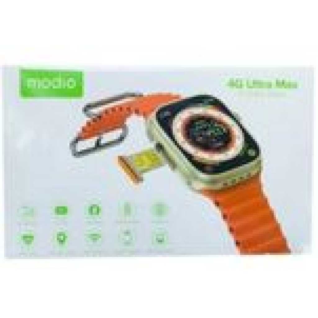 Modio 4G Ultra MAX Smart Watch SIM with 4GB RAM, 64GB Internal Memory – with 3 Smart Watches ️ Modio 4G Ultra MAX with 4GB RAM, 64GB Internal Memory – With 3 Strap Connectivity technology: USB Connectivity technology: USB Brand: Modio 4G SIM Watch/ SIM Insert Color: Black/ Gold 4GB RAM/ 64GB ROM 4G LTE Supported/ WiFi/ Bluetooth/ GPS Android 8.1 & Google Playsotre IP67 Waterproof Battery Life: 02-03 Days Easy to use all social media in your hand High capacity 680mAh battery, it will give more time Use your app easy to monitoring your health High speed 4G networking Key Features: The Modio 4G Ultra Max SIM Support Smartwatch is the perfect choice to stay connected on the go. This powerful smartwatch features 4G connection support, giving you the ability to access data without having to carry your phone. Its lightweight and comfortable design makes it a great choice for everyday wear.