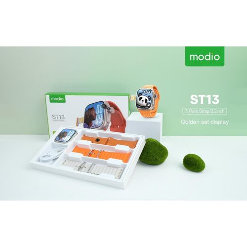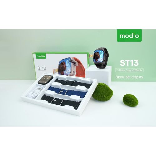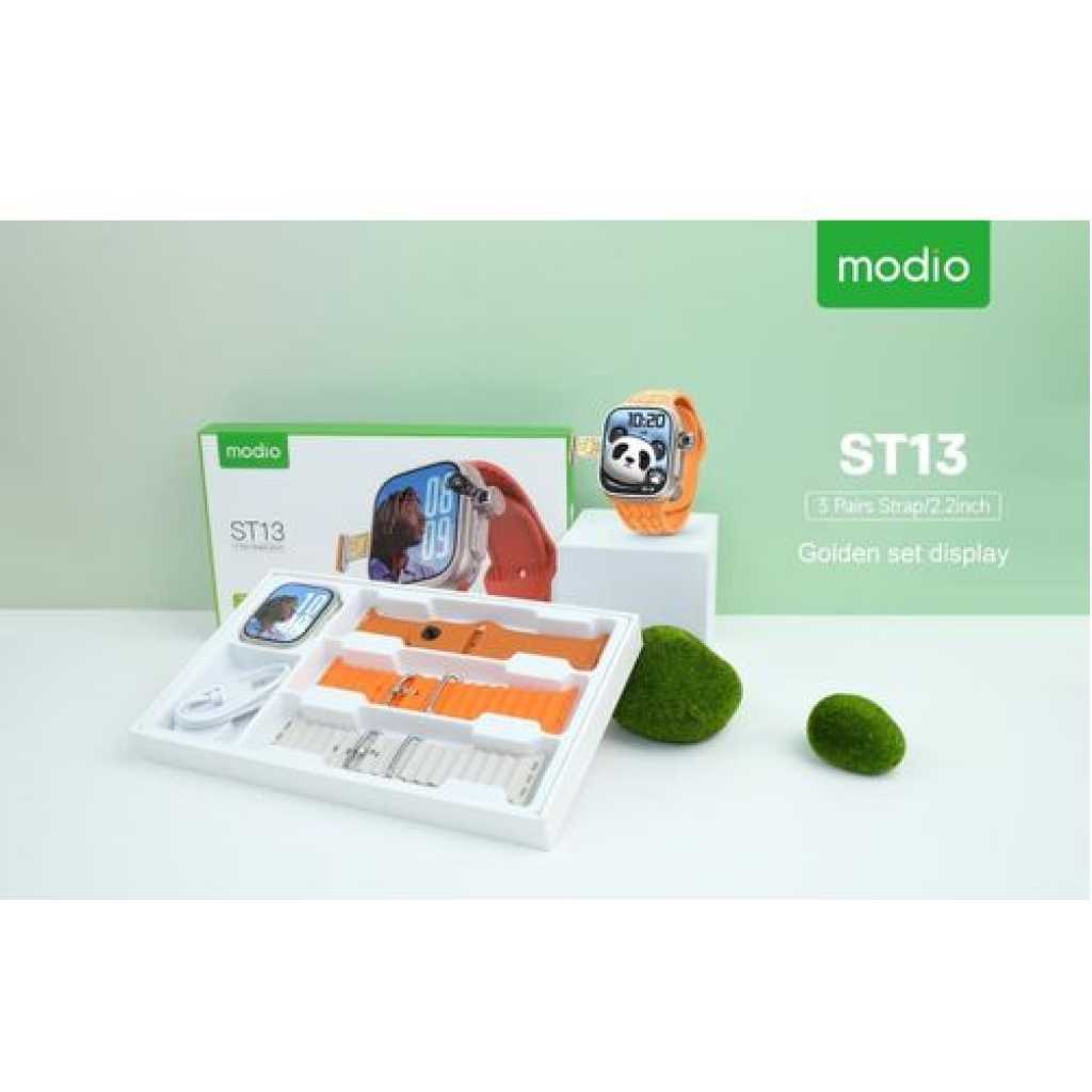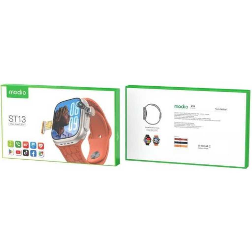 Modio ST13 Smart Watch 2.2 Inch Full Screen Display With 4G SIM card Support 3 Pair Straps and Wireless Charger For Ladies and Gents