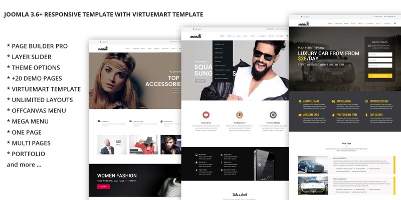 Monica - Multi-Purpose Joomla Template. This is an ultra-premium, highly-responsive Joomla Template built for all kind of websites. Monik is also made on Bootstrap3, grea
