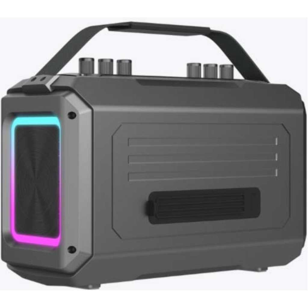 Key Features: Powerful Sound Output : 80W peak wattage with dual 4” and 1.25” drivers for dynamic audio performance. Advanced Bluetooth 5.3 : Ensures a stable connection with a transmission range of approximately 10 meters. Extended Playtime : Up to 5.5 hours of playtime at 100% volume without lighting; up to 1.5 hours at 50% volume. Versatile Connectivity : Supports Bluetooth, AUX IN, U Disk, TF card, and MIC inputs, including live and karaoke modes. Durable Battery : 4000mAh capacity with approximately 5 hours charging time via 5V/2A. Compact Design : Dimensions of 300×161×127mm for easy portability. Specifications: Model : MS22141 Color : Black Bluetooth Version : 5.3 Transmission Range : About 10 meters Driver Size : 4”*2, 1.25”*2 Battery : 7.4V/4000mAh Output Wattage : 80W (Peak)