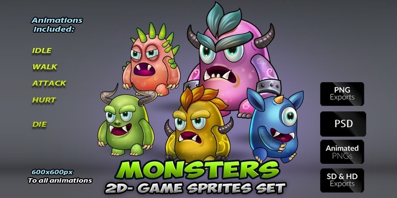 Monster Game Enemies Sprites Set. Game Character Spirtes