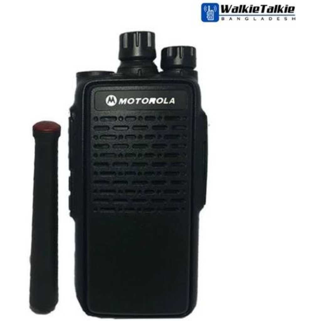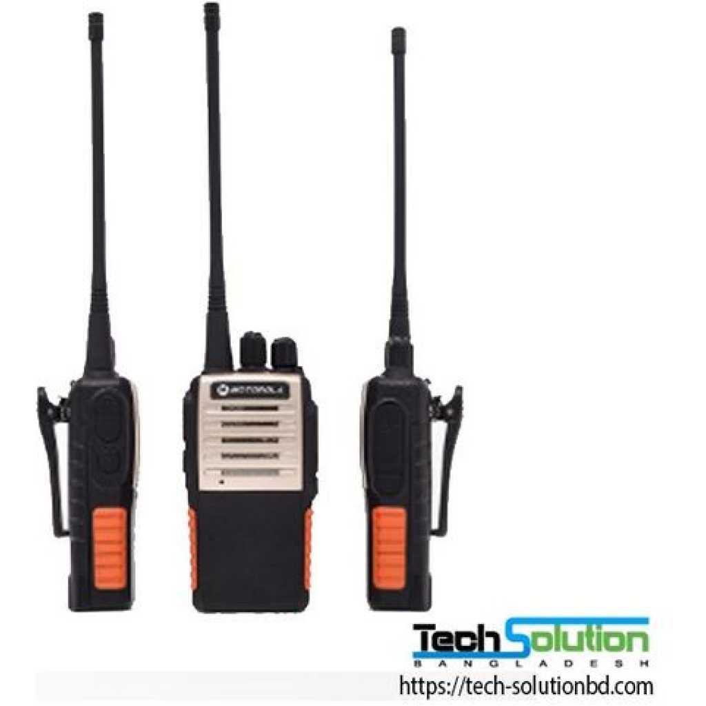 Key Features: Number of Channels: 16 Channels Dimensions (W x H x D) Height x Depth): 50 x 120 x 25 mm. The kit includes a body, antenna, battery, adapter, table charger, Up to 36 hours talk time with handset back – 5:5:90 – Call waiting time is 10-15 days – Motorola GP-1000 Talk Radio Widget + Inner (crowded area) city 2 – 3 km. + Outskirts (free area) 3 – 5 km + Ideal condition 7 – 10 km For 25-40 story buildings, UHF frequency is very good. 2 years warranty, material 1 year > What is a walkie-talkie or two-way radio? Two-way radios or walkie-talkies are handheld or portable radios. They communicate wirelessly on a single, shared frequency band.