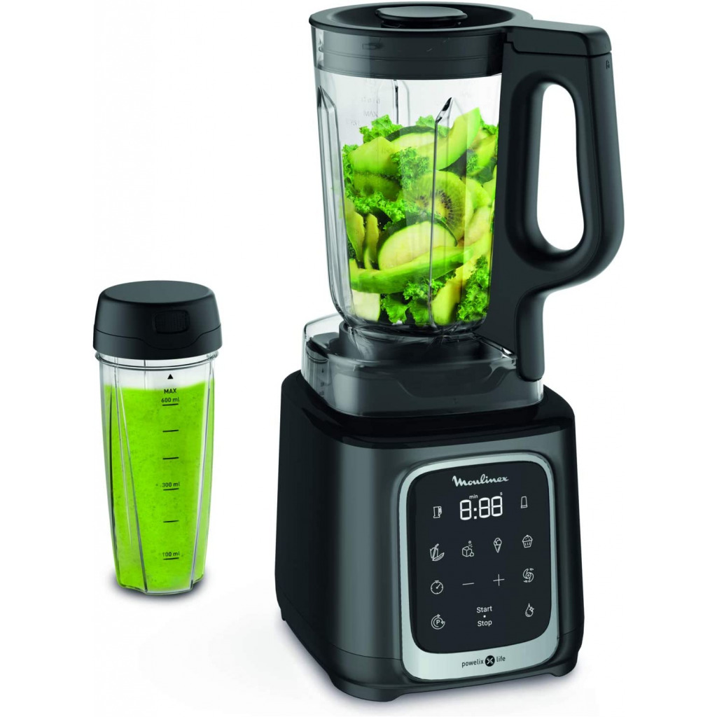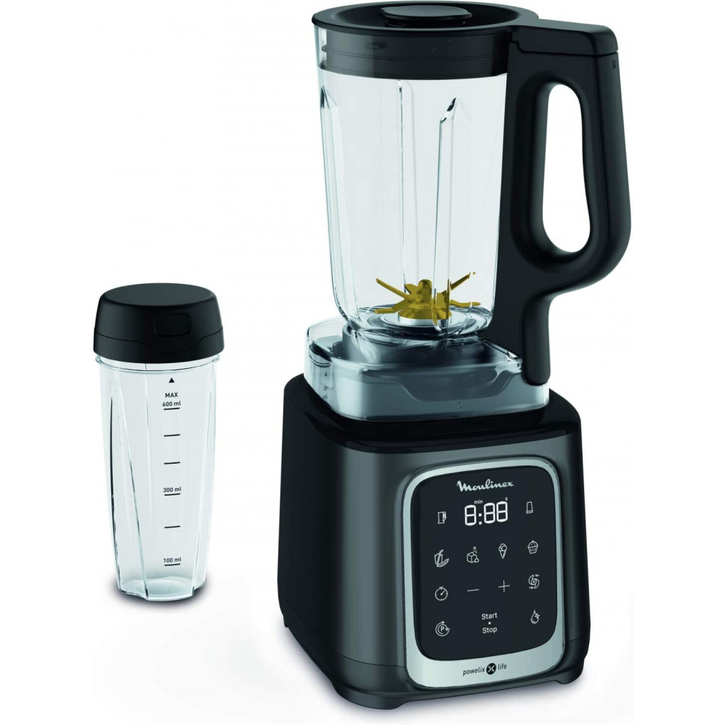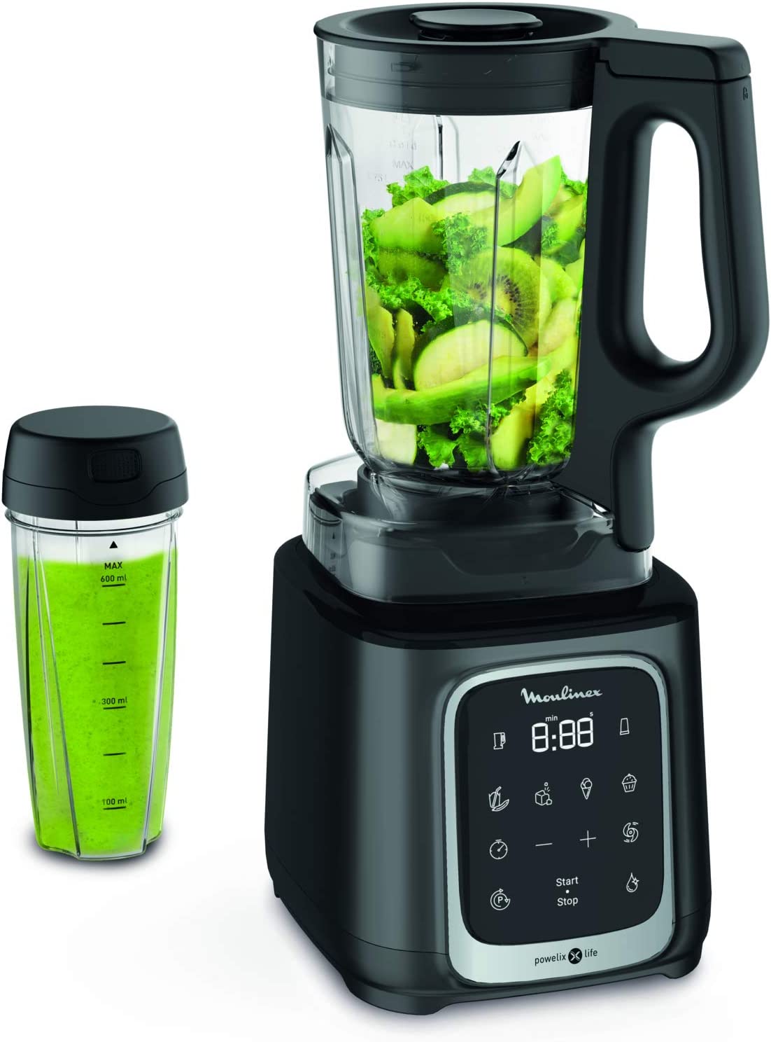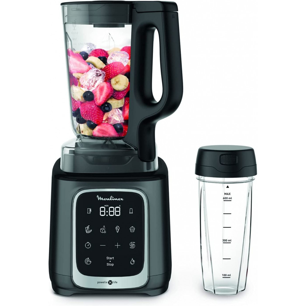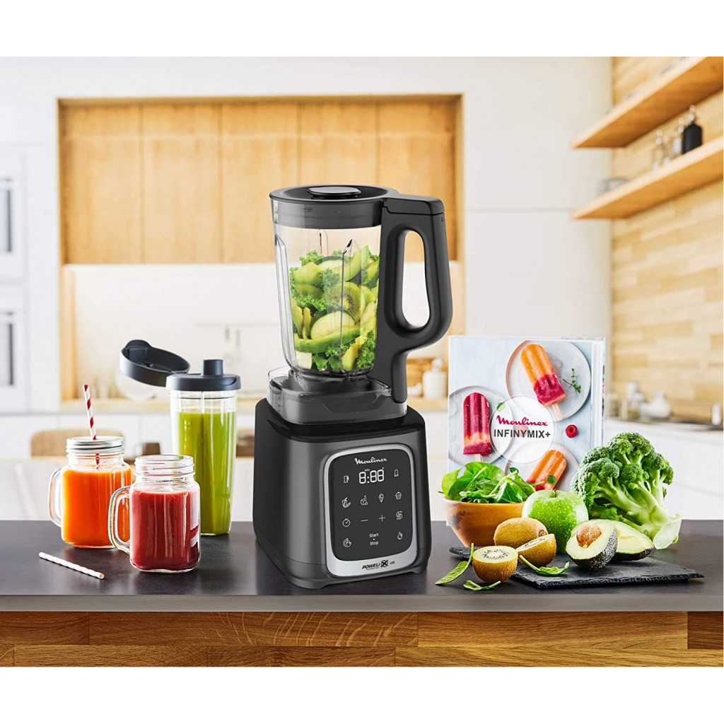 Moulinex Infinymix+ 1.7 Litre High Speed Blender With 600 ml Travel Cup, Powelix Life Pro Blades, 5 Auto Programs, 1600 Watts, Tritan Jar, Black, Lm91Hd27 Enjoy infinite possibilities!! The InfinyMix+ High-Speed Blender offers an endless variety of smoothies and shakes blended to perfection, with an included recipe book to unlock your full creativity. Master over fifty different recipes—with healthy and delicious ideas for any occasion—and achieve ultimate smoothness with 5 easy-to-use automatic programs as well as manual settings. Key Features: Moulinex Infinymix+ 1.7 Litre High Speed Blender With 600 ml Travel Cup, Powelix Life Pro Blades, 5 Auto Programs, 1600 Watts, Tritan Jar, Black, Lm91Hd27 Recipe book: a high-speed blender including “from smoothie to desserts,” a recipe book featuring over fifty healthy and delicious recipes, with perfect ideas for any occasion Easy controls: flawless results are ensured with the choice of manual speed/time control and 5 different auto programs Exceptional smoothness: up to 50x smoother results produced through the combination of a high-speed 1600w motor that reaches up to 35,000 rpm and high-quality blades High-performance blades: exclusive powelix life blade technology offers extreme durability day after day, offering sharpened blades enhanced with a titanium coating, large capacity & compact design: generous portions are within reach with a high capacity 1.75 l tritan jar, while the compact design saves maximum space in the kitchen Smoothies anywhere: experience total satisfaction anywhere, with a convenient 600 ml tritan travel cup for delicious drinks on the go