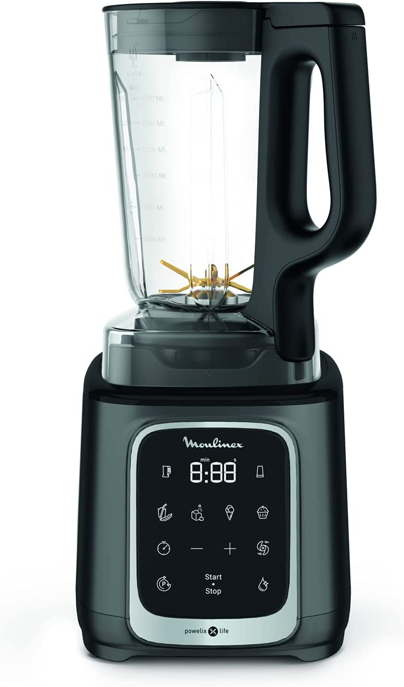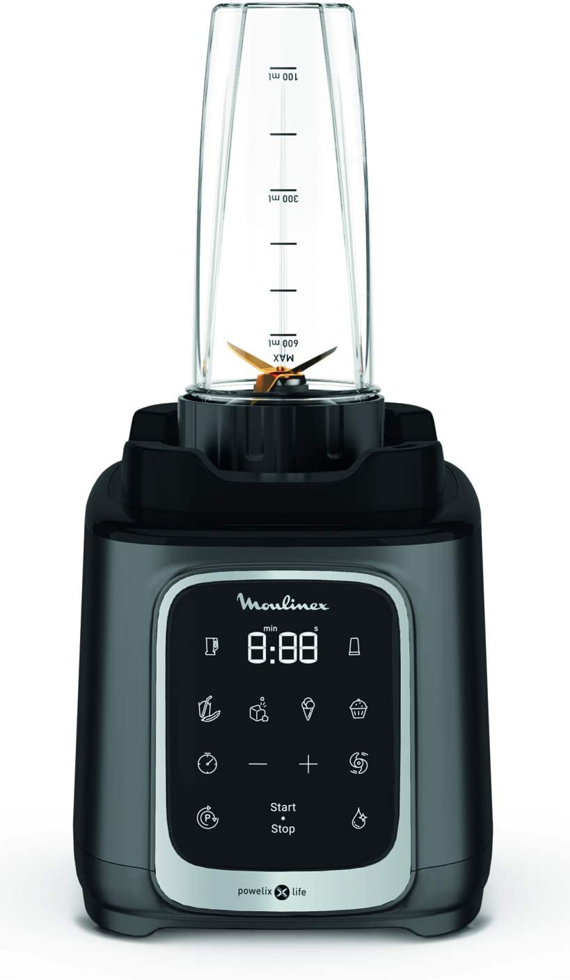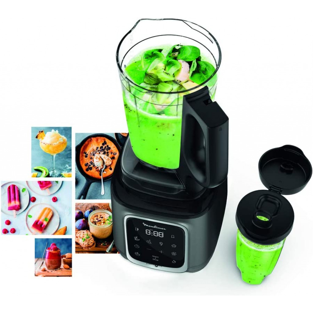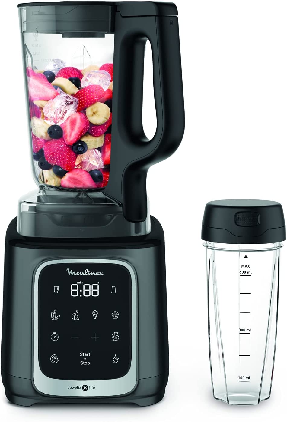 Moulinex Infinymix+ 1.7 Litre High Speed Blender With 600 ml Travel Cup, Powelix Life Pro Blades, 5 Auto Programs, 1600 Watts, Tritan Jar, Black, Lm91Hd27 Enjoy infinite possibilities!! The InfinyMix+ High-Speed Blender offers an endless variety of smoothies and shakes blended to perfection, with an included recipe book to unlock your full creativity. Master over fifty different recipes—with healthy and delicious ideas for any occasion—and achieve ultimate smoothness with 5 easy-to-use automatic programs as well as manual settings. Key Features: Moulinex Infinymix+ 1.7 Litre High Speed Blender With 600 ml Travel Cup, Powelix Life Pro Blades, 5 Auto Programs, 1600 Watts, Tritan Jar, Black, Lm91Hd27 Recipe book: a high-speed blender including “from smoothie to desserts,” a recipe book featuring over fifty healthy and delicious recipes, with perfect ideas for any occasion Easy controls: flawless results are ensured with the choice of manual speed/time control and 5 different auto programs Exceptional smoothness: up to 50x smoother results produced through the combination of a high-speed 1600w motor that reaches up to 35,000 rpm and high-quality blades High-performance blades: exclusive powelix life blade technology offers extreme durability day after day, offering sharpened blades enhanced with a titanium coating, large capacity & compact design: generous portions are within reach with a high capacity 1.75 l tritan jar, while the compact design saves maximum space in the kitchen Smoothies anywhere: experience total satisfaction anywhere, with a convenient 600 ml tritan travel cup for delicious drinks on the go