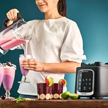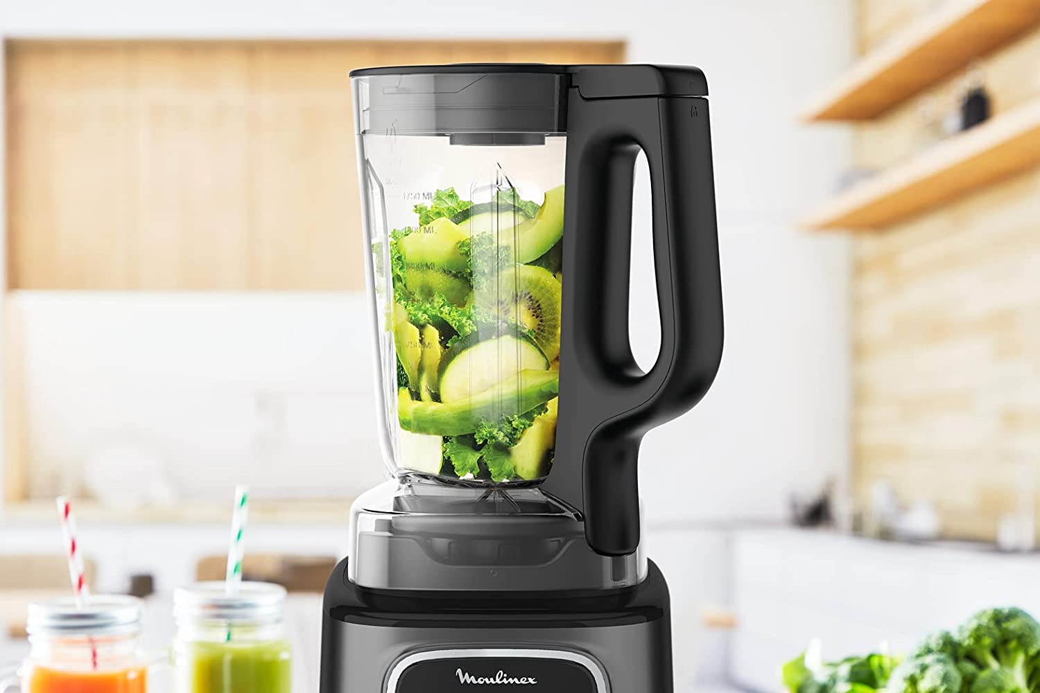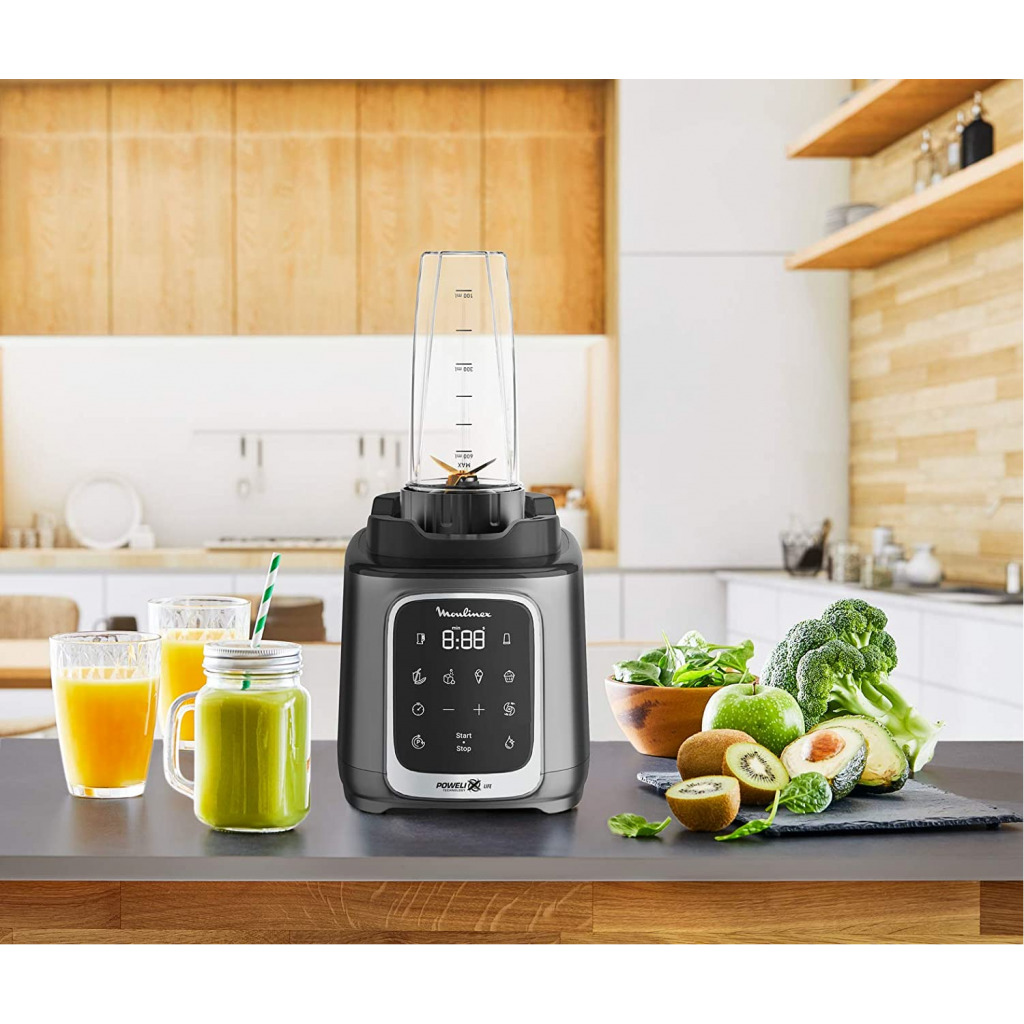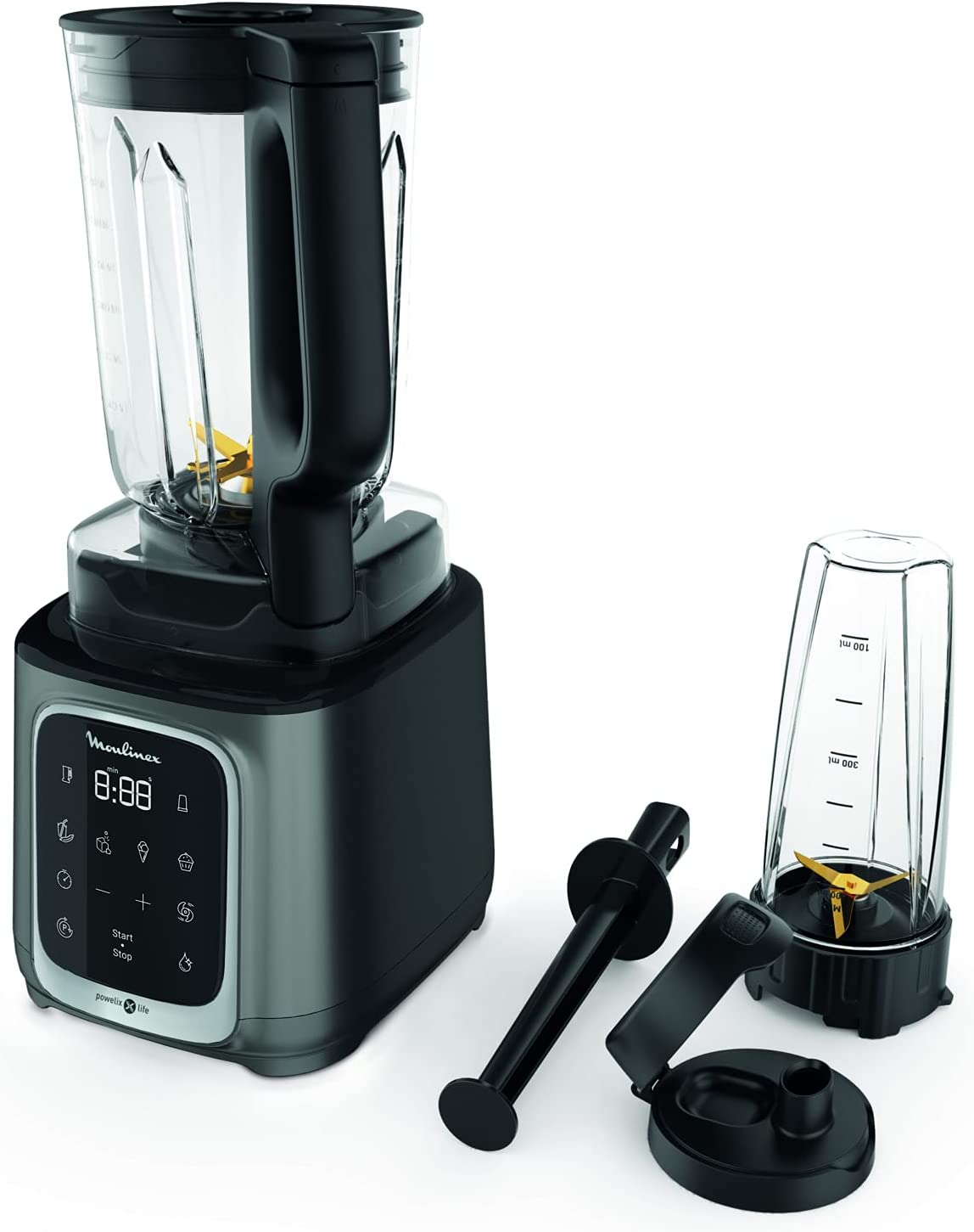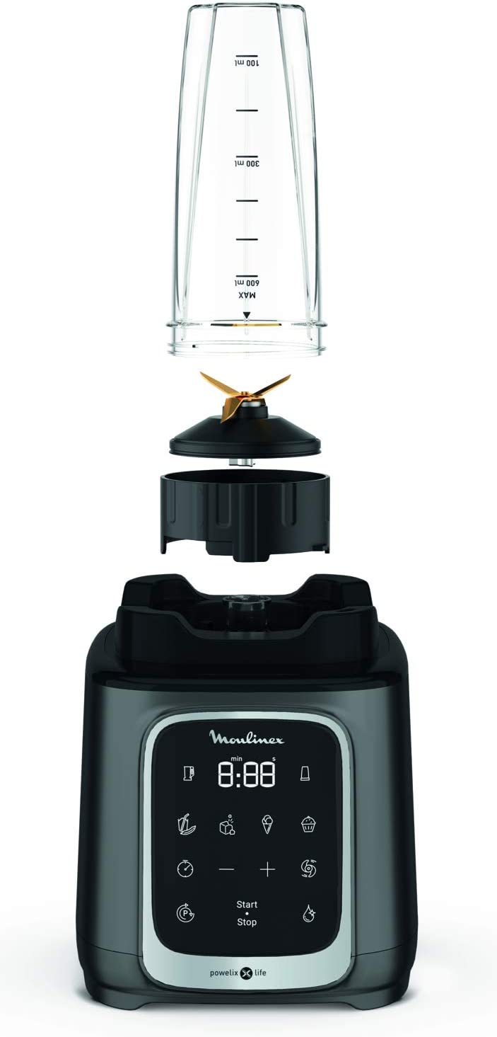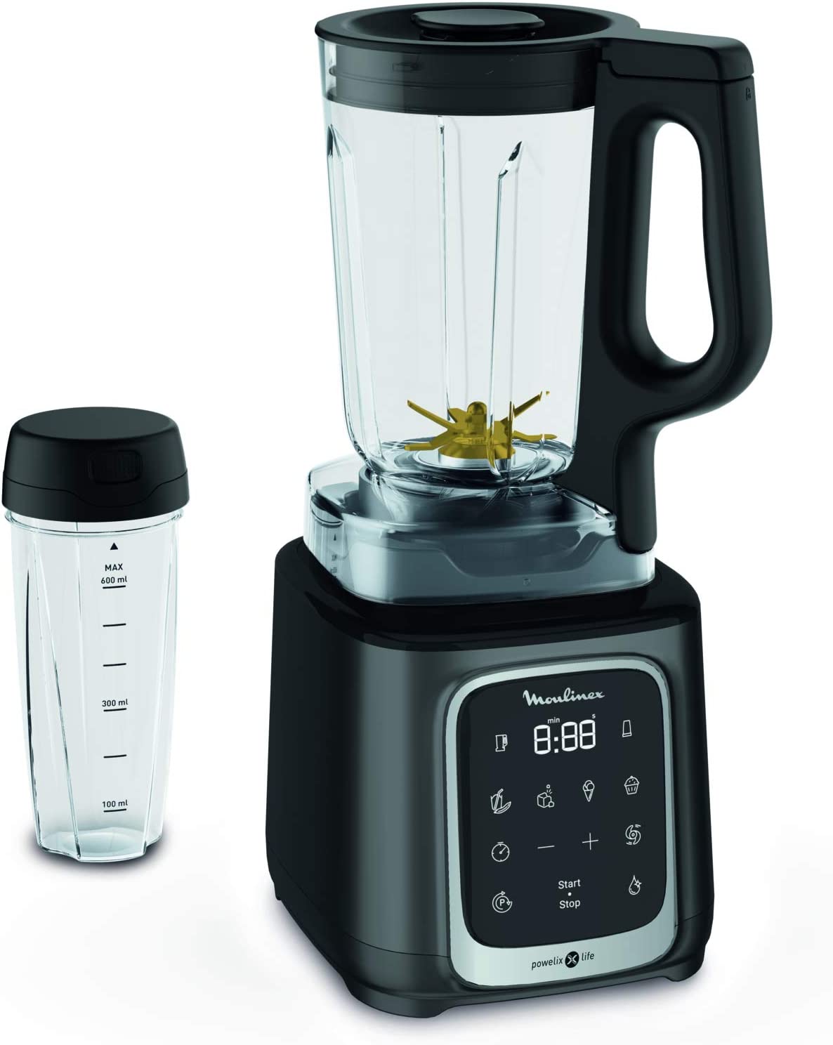 Moulinex Infinymix+ 1.7 Litre High Speed Blender With 600 ml Travel Cup, Powelix Life Pro Blades, 5 Auto Programs, 1600 Watts, Tritan Jar, Black, Lm91Hd27 Enjoy infinite possibilities!! The InfinyMix+ High-Speed Blender offers an endless variety of smoothies and shakes blended to perfection, with an included recipe book to unlock your full creativity. Master over fifty different recipes—with healthy and delicious ideas for any occasion—and achieve ultimate smoothness with 5 easy-to-use automatic programs as well as manual settings. Key Features: Moulinex Infinymix+ 1.7 Litre High Speed Blender With 600 ml Travel Cup, Powelix Life Pro Blades, 5 Auto Programs, 1600 Watts, Tritan Jar, Black, Lm91Hd27 Recipe book: a high-speed blender including “from smoothie to desserts,” a recipe book featuring over fifty healthy and delicious recipes, with perfect ideas for any occasion Easy controls: flawless results are ensured with the choice of manual speed/time control and 5 different auto programs Exceptional smoothness: up to 50x smoother results produced through the combination of a high-speed 1600w motor that reaches up to 35,000 rpm and high-quality blades High-performance blades: exclusive powelix life blade technology offers extreme durability day after day, offering sharpened blades enhanced with a titanium coating, large capacity & compact design: generous portions are within reach with a high capacity 1.75 l tritan jar, while the compact design saves maximum space in the kitchen Smoothies anywhere: experience total satisfaction anywhere, with a convenient 600 ml tritan travel cup for delicious drinks on the go
