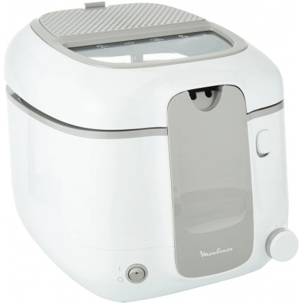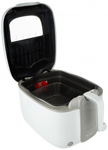 Moulinex Super Uno Access 2.2 Litre Deep Fryer, 1800 Watts, White / Grey, Plastic, AM310028 For all your favorite fried delights cooked to crispy, golden-brown perfection, the Moulinex Super Uno Access electric deep fryer makes perfect results effortless. The removable non-stick bowl, basket, handle and lid are all dishwasher-safe for maximum convenience, while the removable odor filter ensures less frying smells in the kitchen. This high-performance deep fryer offers generous portions for up to six people, with a capacity of 2.2 L of oil producing up to 1.5 kg of irresistible fried treats. The adjustable thermostat up to 190 °C lets you master all your favorite snacks and side dishes with total ease: perfectly crispy golden-brown fries, buttermilk fried chicken, mozzarella sticks, fritters, sweet potato fries, and so much more.